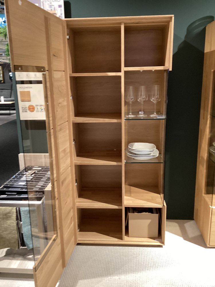 Bemerkung Es handelt sich um ein AUSSTELLUNGSSTÜCK! ℹ️ Besondere Details: Inkl. Einlegeboden, LED Beleuchtung, Funkdimmer ℹ️ Spezifikation: Es handelt sich um Ausstellungsware! ℹ️ Abmessungen: B/H/T ca. 70x164x40cm ℹ️ Farbe und Material: Wildeiche massiv, soft gebürstet ❗️Wichtige Information Lieferung: Nur Selbstabholung und Selbstabbau. Zwischenverkauf vorbehalten. Ohne Dekoration Haben wir Ihr Interesse geweckt, dann kommen Sie gerne vorbei oder kontaktieren Sie uns telefonisch oder schriftlich. Die Antwortzeiten sind an die Geschäftszeiten gebunden, bitte haben Sie Verständnis, dass es einen Moment dauern kann. Mo.-Sa. : 10:00 bis 19:00 Uhr