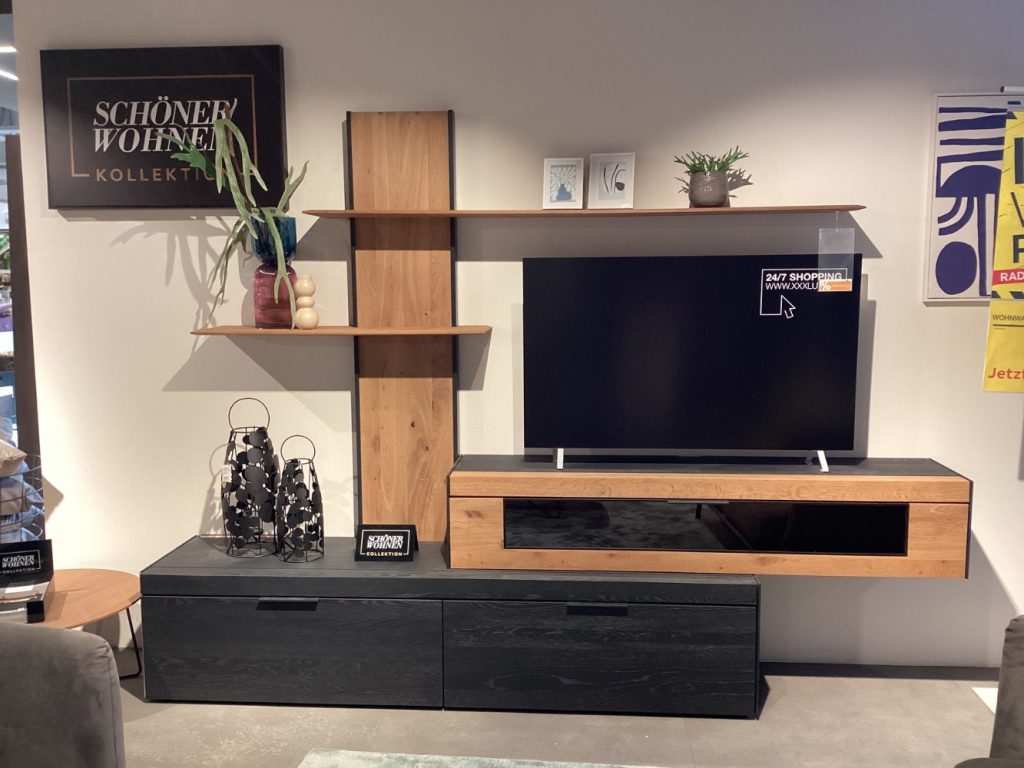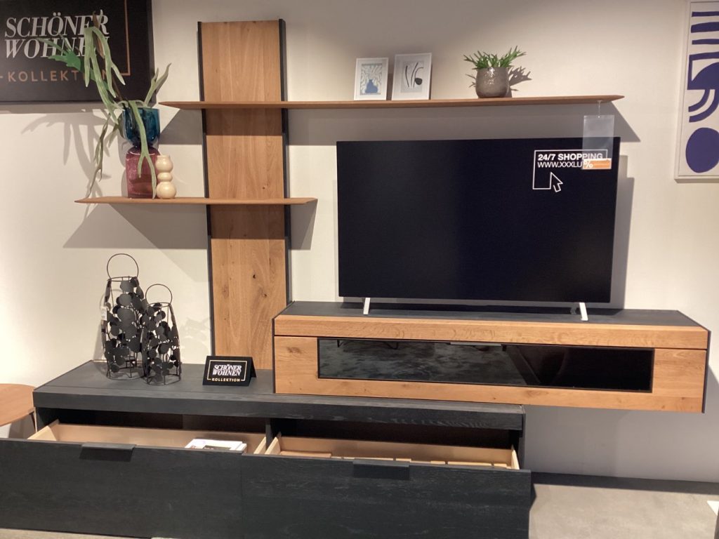 Bemerkung Es handelt sich um ein AUSSTELLUNGSSTÜCK! ℹ️ Besondere Details: Ohne Beleuchtung ℹ️ Spezifikation: Es handelt sich um Ausstellungsware! ℹ️ Abmessungen: B/H/T ca. 300x205x49cm ℹ️ Farbe und Material: Kerneiche, Anthrazit ❗️Wichtige Information Lieferung: Nur Selbstabholung und Selbstabbau. Zwischenverkauf vorbehalten. Ohne Dekoration Haben wir Ihr Interesse geweckt, dann kommen Sie gerne vorbei oder kontaktieren Sie uns telefonisch oder schriftlich. Die Antwortzeiten sind an die Geschäftszeiten gebunden, bitte haben Sie Verständnis, dass es einen Moment dauern kann. Mo.-Sa. : 10:00 bis 19:00 Uhr