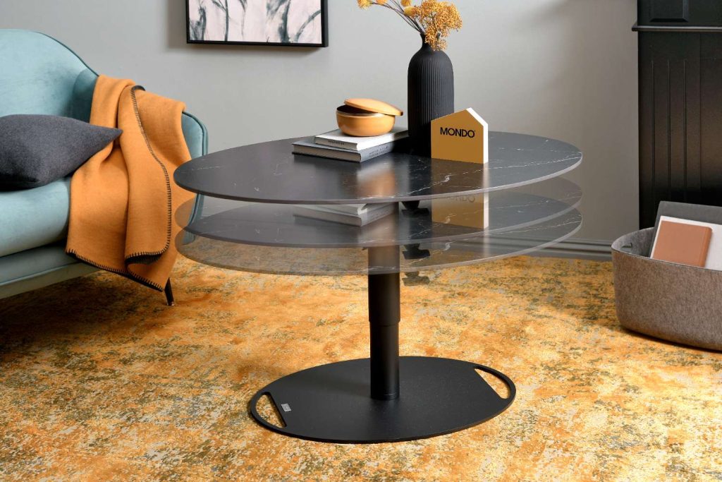 MONDO Couchtisch Platte Keramik Marquina, Gestell Stahl mattschwarz, höhenverstellbar, B/H/T ca. 100x44-64x68 cm.