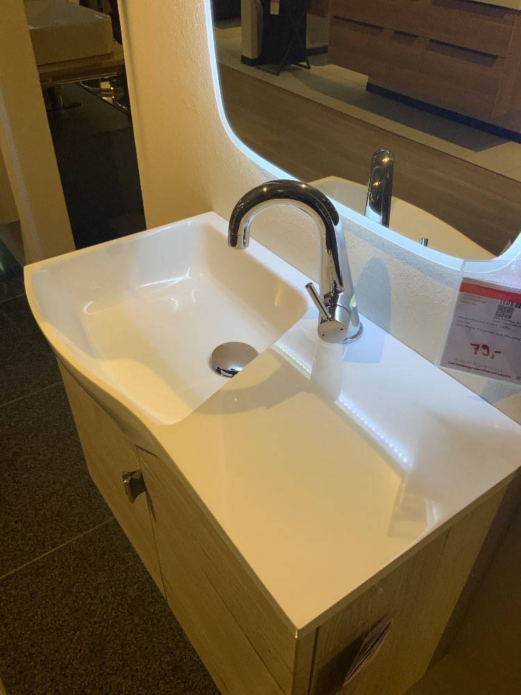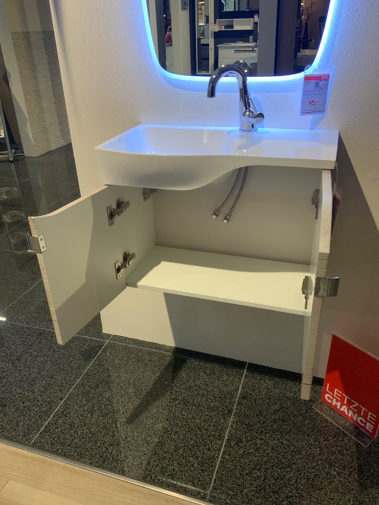 Breite ca. 60,4 cm Front / Korpus: Eiche Struktur weiß 1x Mineralmarmor-Waschtisch mit Unterschrank, 1x Flächenspiegel Ohne Armatur , nicht kombinierbar