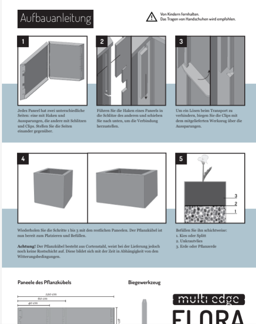 Achtung! Der Pflanzkübel besteht aus Cortenstahl, weist bei der Lieferung jedoch noch keine Rostschicht auf.