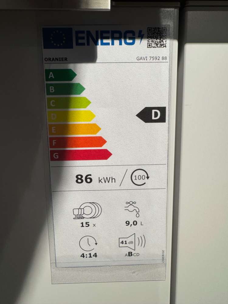 Energieklasse: A (Spektrum: Von A+++ bis D) Energylabel A Spektrum: Von A+++ bis D
