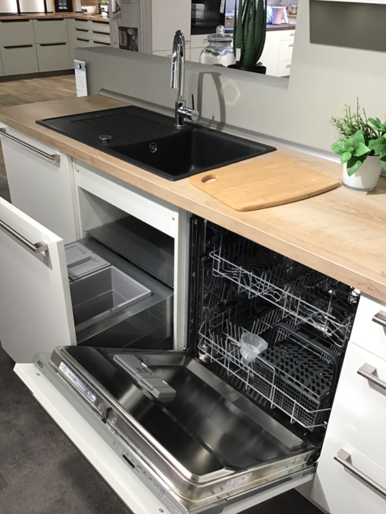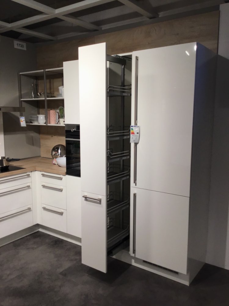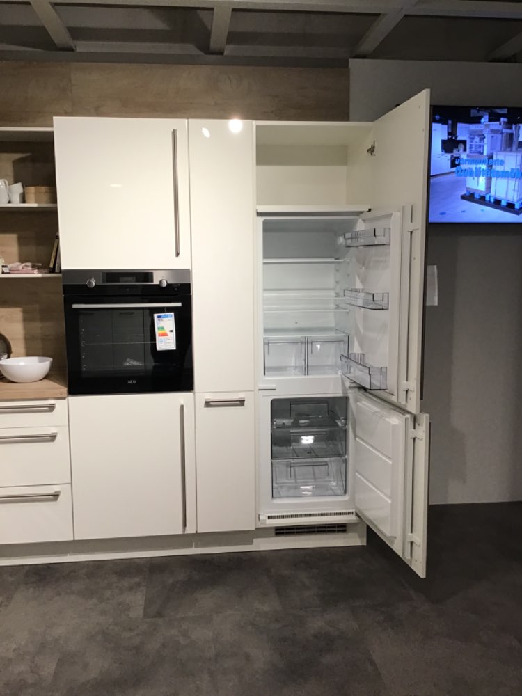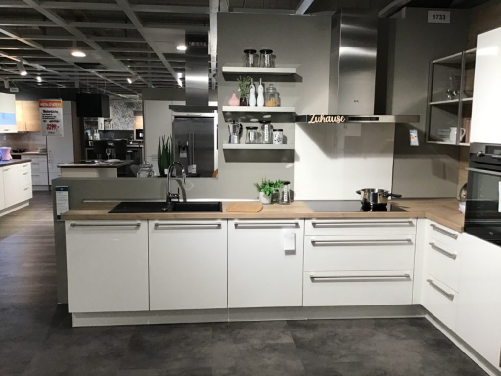 Bemerkung Erleben Sie modernen Stil und Funktionalität mit der NOBILIA Flash Lacklaminat L-Küche in elegantem Weiß Hochglanz. Diese exklusive Ausstellungsware besticht durch ihre hochwertige Oberfläche aus Lack Laminat, die nicht nur glänzend, sondern auch pflegeleicht ist. Mit einer beeindruckenden Größe von ca. 335 x 260 cm bietet diese L-Form-Küche genügend Raum und eine durchdachte Aufteilung für effizientes Arbeiten und stilvolles Wohnen. Eine der herausragenden Eigenschaften dieser Küche ist der integrierte Apotheke-Auszugsschrank, der Ihnen leicht zugänglichen Stauraum für Gewürze und Lebensmittel bietet. Die Arbeitsplattenhöhe von ca. 91 cm sorgt für optimalen Komfort bei der Zubereitung Ihrer Mahlzeiten. Der Korpus in weiß glänzend korrespondiert harmonisch mit den Fronten und unterstreicht das moderne Design. Zusätzlich ist die Küche mit einem hochwertigen AEG Elektroset ausgestattet, dessen Edelstahloptik perfekt mit den eleganten Stangengriffen harmoniert. Die Flash Lacklaminat-Küche von NOBILIA ist nicht nur ein Blickfang, sondern auch ein funktionaler Mittelpunkt für Ihr Zuhause. Tauchen Sie ein in die Verbindung von Design und praktischer Funktionalität und gestalten Sie Ihren Küchenalltag effizienter und stilvoller.
