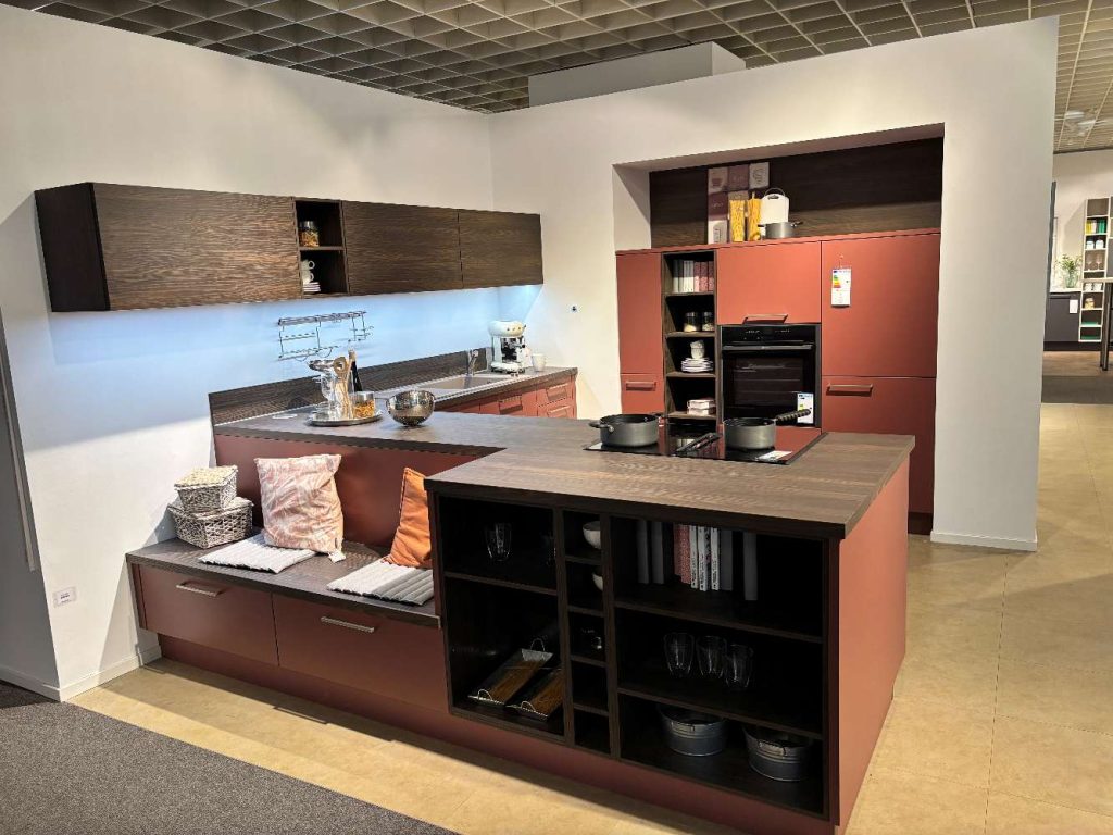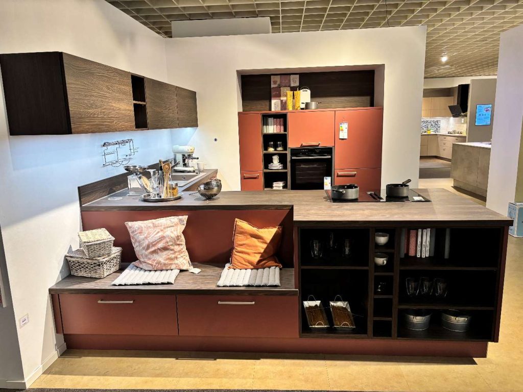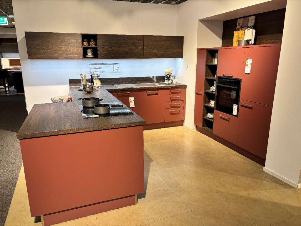 Soft Lack S19,PG 4, Front: 765 Hennarot softmatt, Korpus: SHD Sahara, APL: A23 Nussbaum Kuba NB