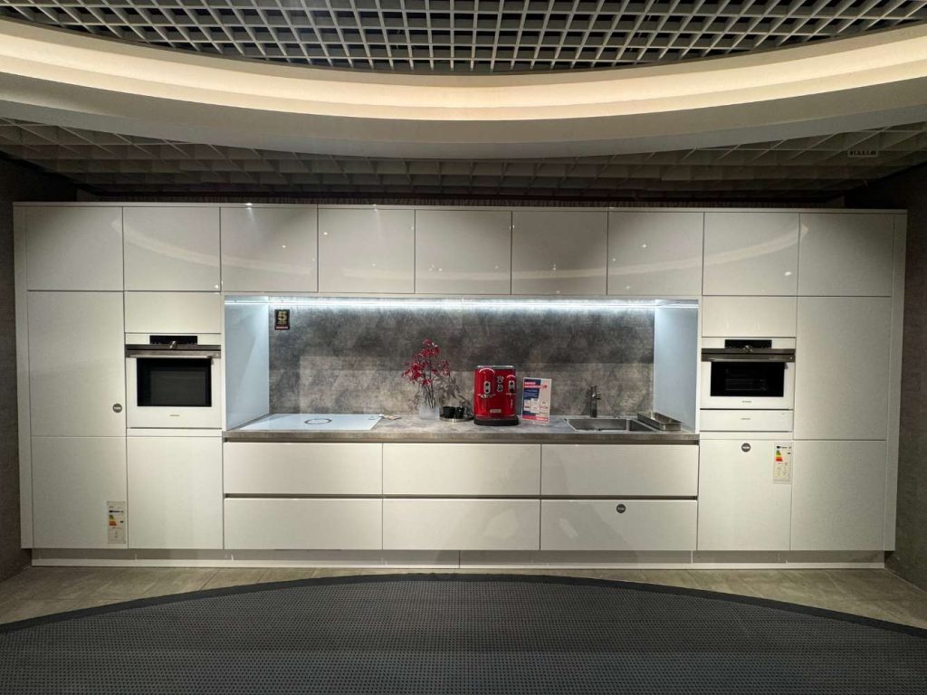 BemerkungDie Schüller Küchen Gala in Kristallweiß Hochglanz verkörpert modernen Stil in seiner reinsten Form. Diese einzeilige Ausstellungsküche glänzt durch ihre zeitlose Eleganz und strahlt Raffinesse aus, die das Herz jeder modernen Wohnung höher schlagen lässt. Das kristallweiße Hochglanz-Finish verleiht der Küche einen makellosen und frischen Look, der jeden Raum erhellt und für ein Gefühl von Geräumigkeit sorgt.
