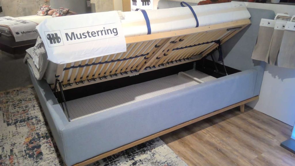 Besonders praktisch ist der beidseitig zugängliche Bettkasten, der zusätzlichen Stauraum für Bettwäsche, Decken oder Kissen bietet und so für mehr Ordnung im Schlafzimmer sorgt. Die massiven Eichenholzfüße verleihen dem Bett nicht nur Stabilität, sondern setzen auch einen natürlichen Akzent, der sich harmonisch in die bestehende Einrichtung einfügt.