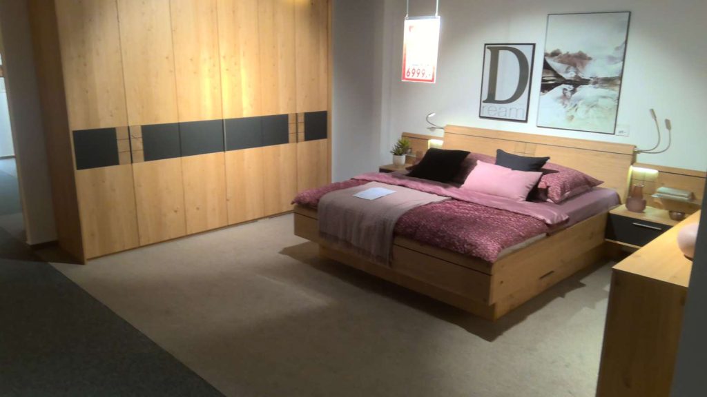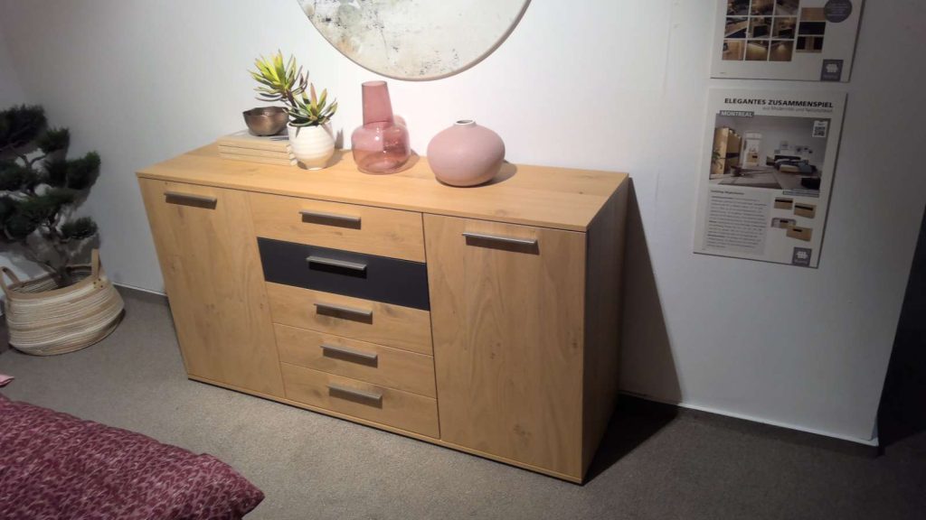 BemerkungEntdecken Sie das exquisite Schlafzimmer-Set "Montreal" von MUSTERRING, das durch seine elegante Gestaltung in Balkeneiche furniertem Holz besticht. Diese erstklassige Ausstellungsware vereint zeitloses Design mit Funktionalität und schafft eine warme, einladende Atmosphäre in Ihrem Schlafzimmer. Der großzügige 6-türige Kleiderschrank mit den Maßen von ca. 269x230x60 cm bietet reichlich Stauraum für Ihre Garderobe und vereinfacht die Organisation. Das komfortable Bett mit einer Liegefläche von ca. 180x200 cm lädt zu erholsamen Nächten ein, während die stilvolle Kommode, die ca. 151x83x46 cm misst, zusätzlichen Stauraum für Ihre persönlichen Schätze bereithält. Die natürliche Schönheit des Holzes wird durch das klare Design betont und verleiht Ihrem Raum ein harmonisches Ambiente. Lassen Sie sich von der Qualität und Ästhetik der Montreal-Möbelkollektion begeistern und verwandeln Sie Ihr Schlafzimmer in eine Oase der Ruhe und Behaglichkeit.
