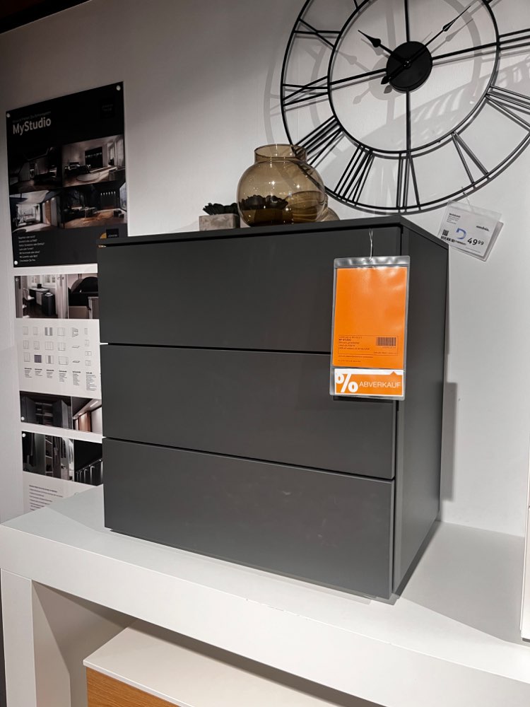 !!!AUSSTELLUNGSWARE!!! !!!SELBSTAUBBAU!!! Nachtsrank: B/H/T in ca. 60/60/42 in cm F/K Farbe: Schieffer Grau GR/ Push to Open system