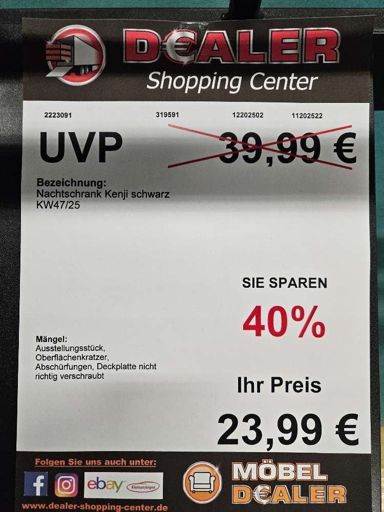 Nachtschrank Kenji schwarz statt 39,99€