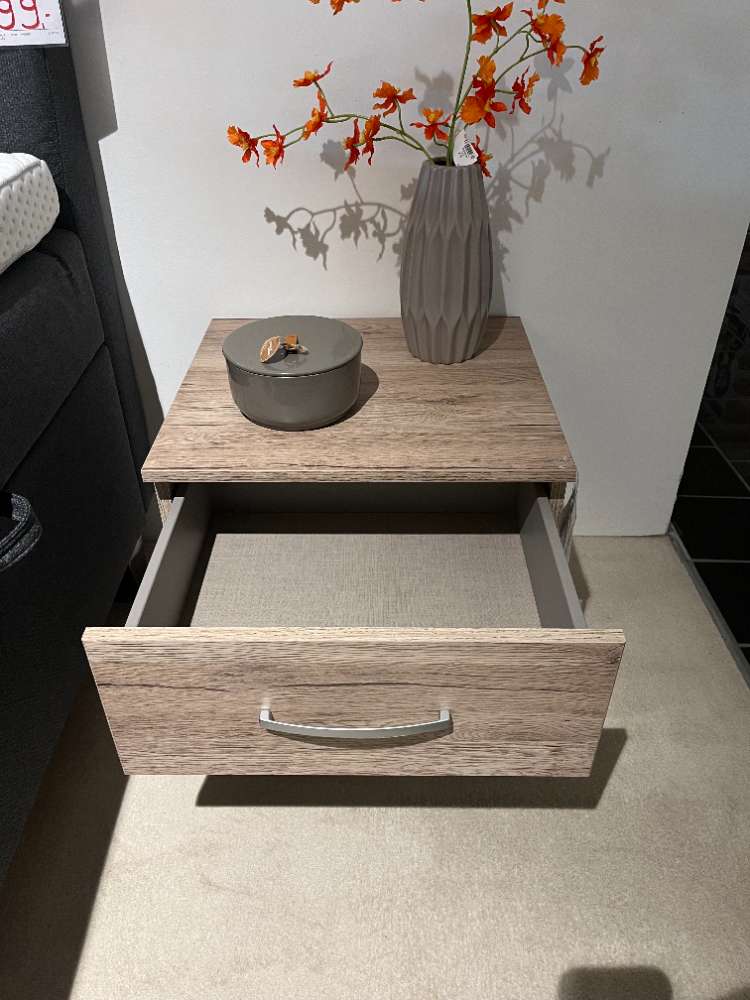 BemerkungDer Nachttisch Amaya in der Ausführung Eiche Sanremo hell präsentiert sich als stilvolle und funktionale Ergänzung für Ihr Schlafzimmer. Dieses Modell, das als Ausstellungsstück erhältlich ist, verbindet zeitlose Eleganz mit praktischer Anwendung und ist perfekt geeignet, um Ihre persönliche Einrichtung zu komplettieren. Mit seinen kompakten Maßen von 47x43x42 cm fügt sich der Nachttisch mühelos in unterschiedliche Raumkonzepte ein und bietet gleichzeitig ausreichend Abstellfläche.