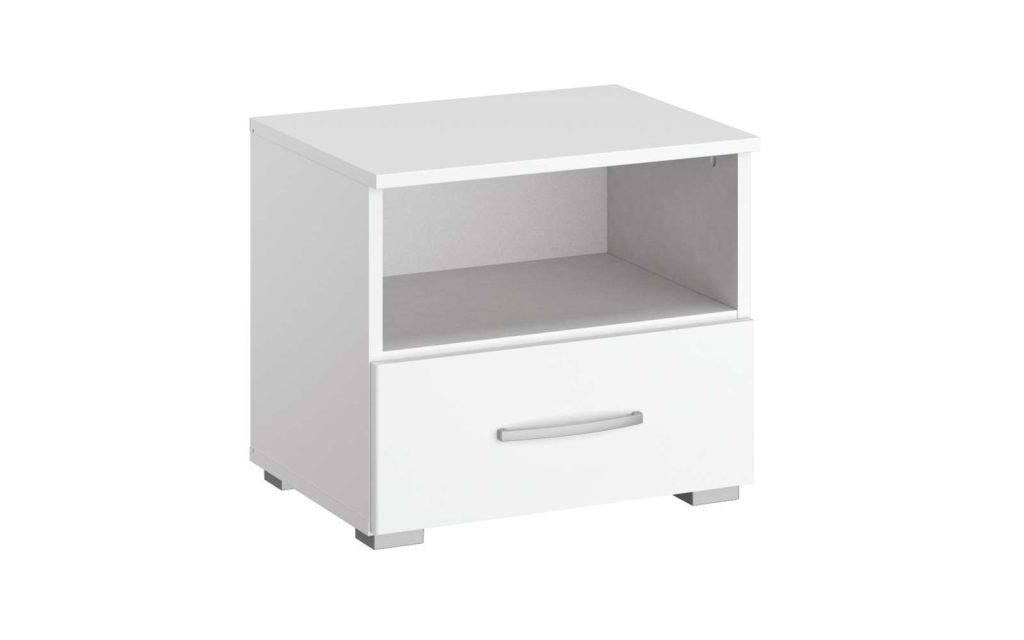 BemerkungKorpus und Front in alpinweiß, Griff und Füße in Alu-Nachbildung, 1 Fach und 1 Schubkasten mit Selbsteinzug und Dämpfung, B/H/T ca. 47 x 43 x 42 cm.