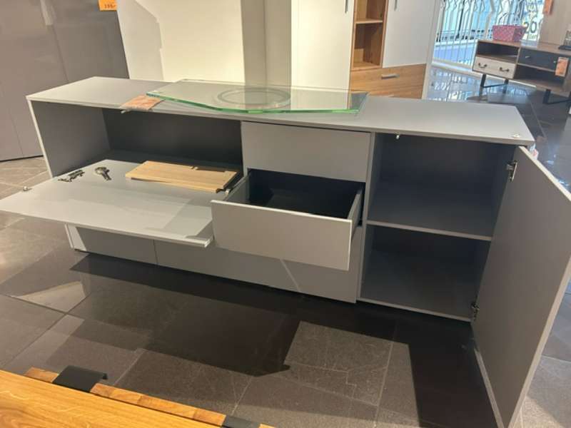 BemerkungSideboard in Naturgrau matt mit Holzapplikation (Schubläden wahlweise in grau oder Holz Nb)