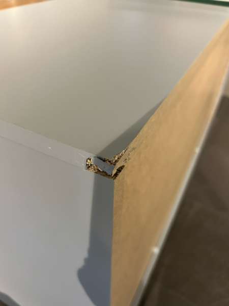 Das Sideboard hat eine Macke an der hinteren rechten Ecke, sonst sind keine weiteren Mängel bekannt.