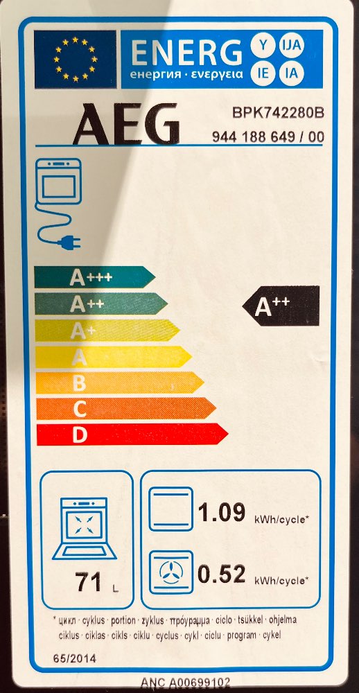 Energieklasse: B (Spektrum: Von A bis G)