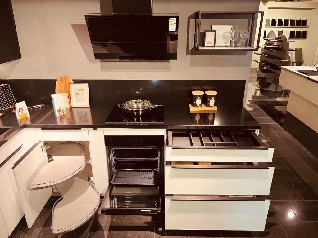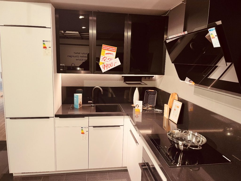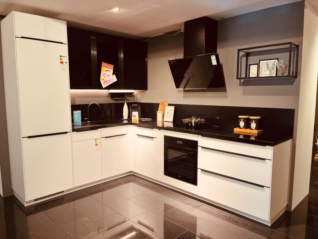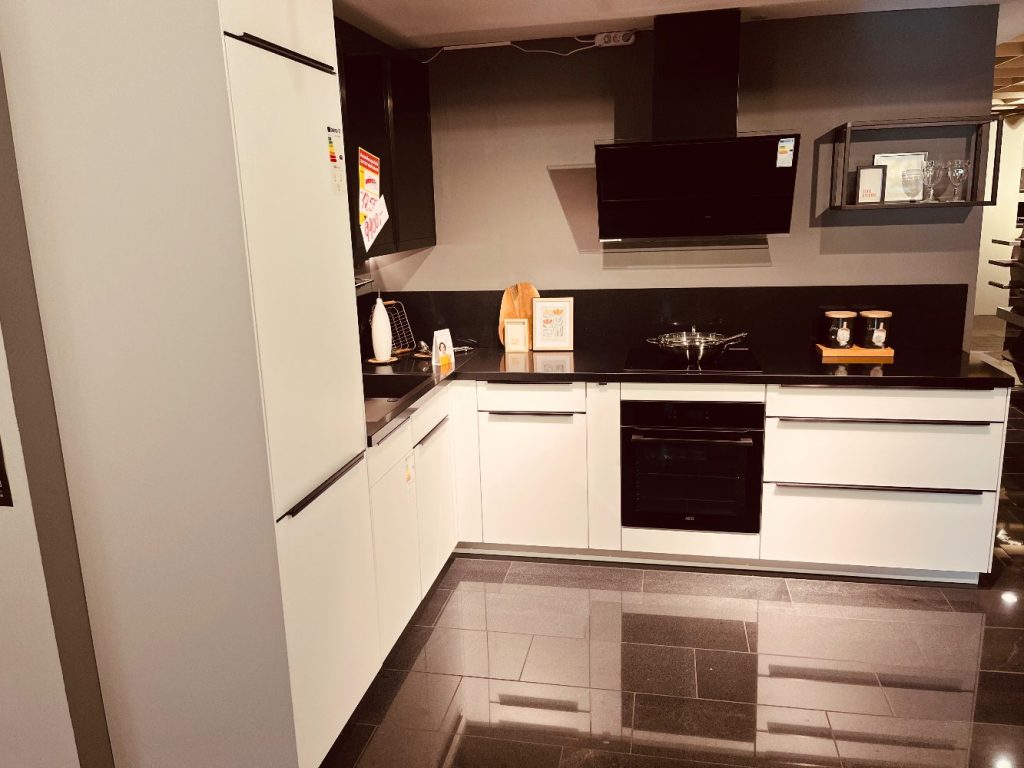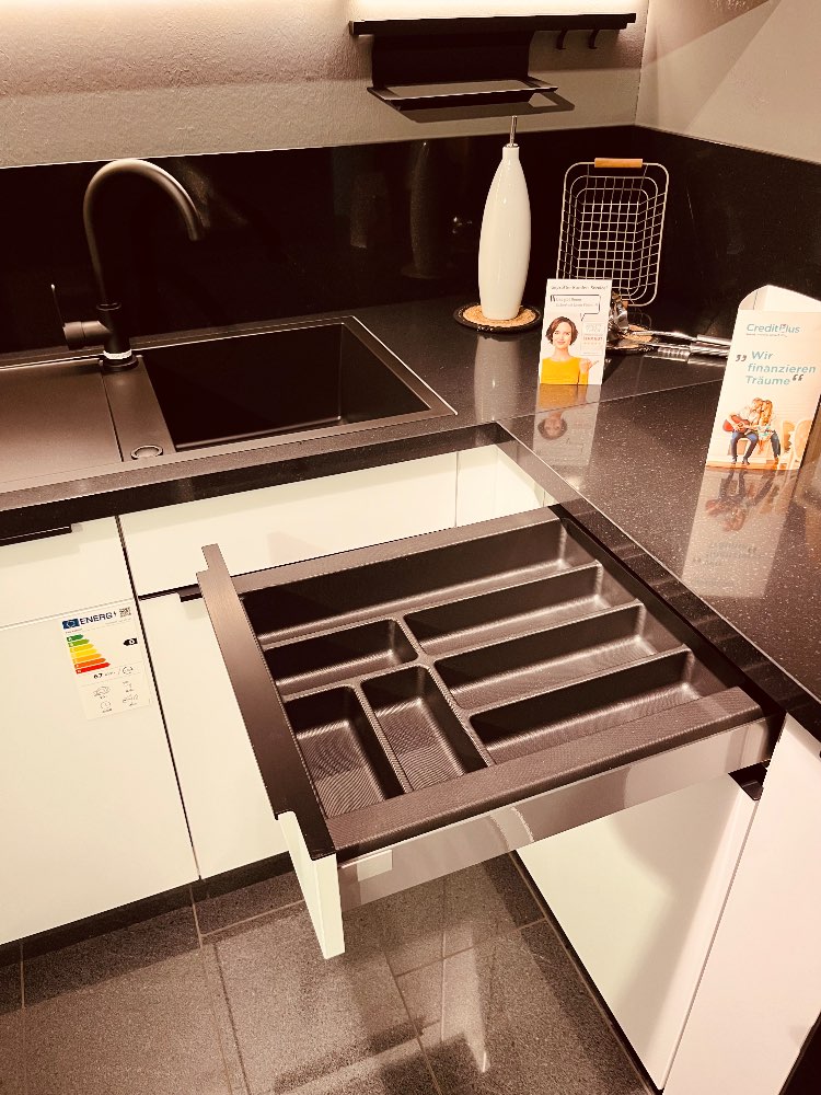 Farb-BeschreibungWeis mit schwarzer Arbeitsplatte / Schwarzen Akzenten
