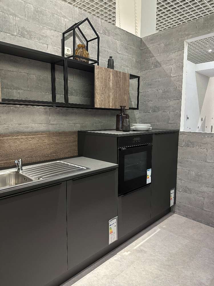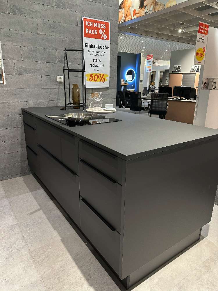 BemerkungDie Nolte Küche P14 Plus vereint modernes Design mit funktionaler Eleganz. Diese Ausstellungsküche beeindruckt nicht nur durch ihre großzügigen Maße von etwa 3050 x 2000 mm, sondern auch durch ihre durchdachte Form in einer Küche mit Insel. Die Fronten in Graphit softmatt strahlen eine zeitlose Ruhe aus und werden durch den Korpus in GTD Graphit harmonisch ergänzt. Die schwarzen Metallgriffleisten der Form 561 verleihen dem Gesamtbild eine edle und dennoch dezente Note, die sich perfekt in jedes moderne Wohnambiente einfügt.
