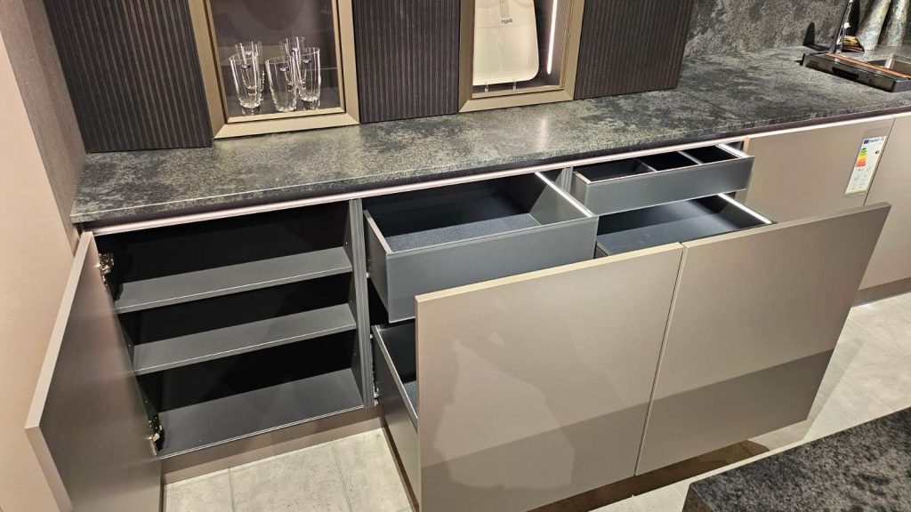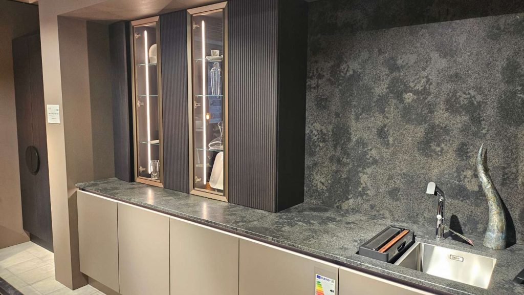 BemerkungDie Neo Lodge von NOLTE KÜCHE vereint modernes Design mit hochwertigen Materialien und durchdachter Funktionalität. Diese elegante Ausstellungsware beeindruckt mit ihrer edlen Front in Braun, die perfekt mit dem attraktiven Magma softmatt Lack kombiniert wird. Die Arbeitsflächenhöhe von etwa 92 cm bietet eine ergonomische Arbeitshöhe, die sowohl Komfort als auch Effizienz in der Küche gewährleistet.