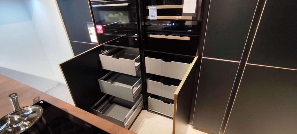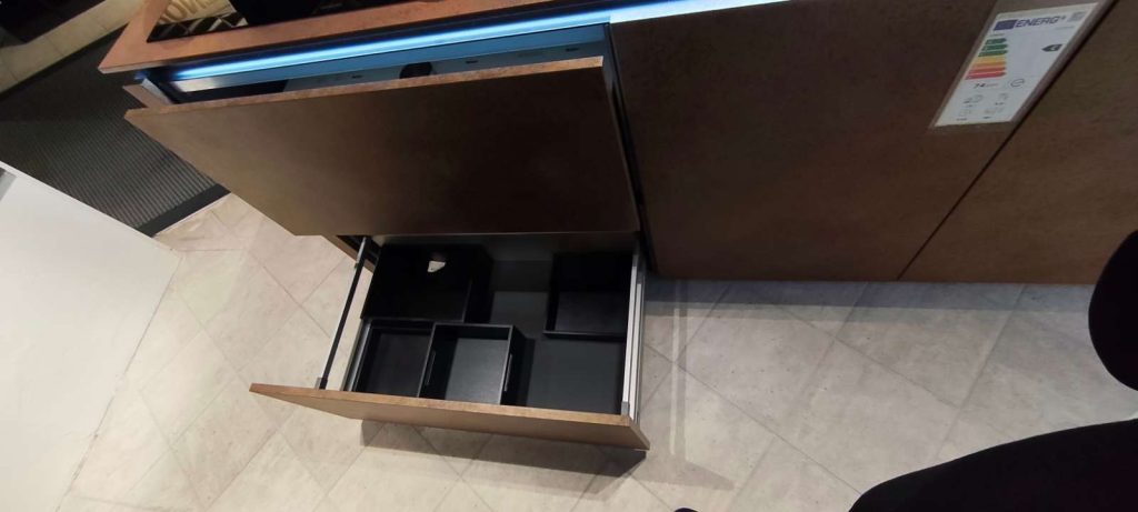 Bemerkung Die Nolte Küche Flair/Ferro Corstenstahl/Schwarz Messing Optik vereint zeitlose Eleganz mit modernem Industriedesign. Als Ausstellungsstück bietet sie Ihnen die perfekte Gelegenheit, hochwertige Materialien und stilvolle Gestaltung in Ihrer Küche zu erleben. Die Kombination aus Corstenstahl und der Schwarz Messing Optik verleiht der Küche einen raffinierten und robusten Charakter, ideal für urbane Wohnkonzepte. Trotz ihrer Rolle als Ausstellungsware präsentiert diese Küche die Qualität und das handwerkliche Know-how von Nolte Küche. Jedes Detail, von den Oberflächen bis zu den Griffen, wurde sorgfältig gestaltet, um sowohl optisch als auch funktional zu überzeugen. Diese Küche ist nicht nur ein praktischer Raum zum Kochen und Leben, sondern auch ein Stilstatement, das einen bleibenden Eindruck hinterlässt. Ob beim Abendessen mit Freunden oder dem morgendlichen Kaffee – hier wird jedes Erlebnis zu einem besonderen Moment.