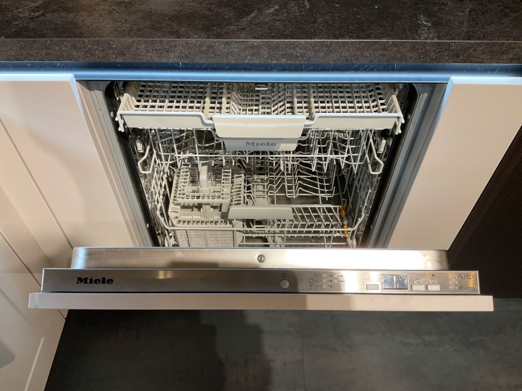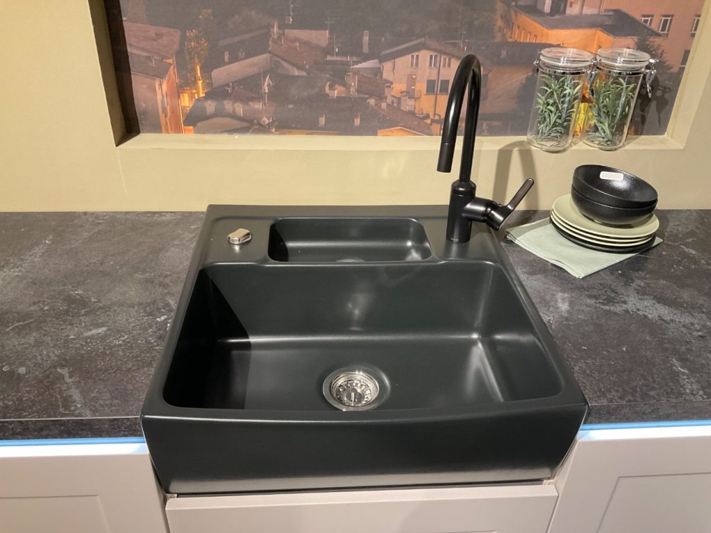 Die grifflosen schwarzen Elemente unterstreichen das minimalistische Design, während die Korpusfarben in Sahara und Graphit dem Raum Tiefe und Kontrast verleihen. Bei einer Arbeitsflächenhöhe von ca. 91 cm wird ergonomischer Komfort bei jedem Handgriff gewährleistet. Schwarz gehaltene Elektrogeräte integrieren sich nahtlos in das Design und schaffen einen stilvollen, durchgängigen Look.