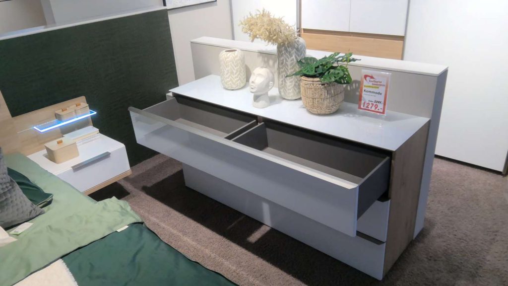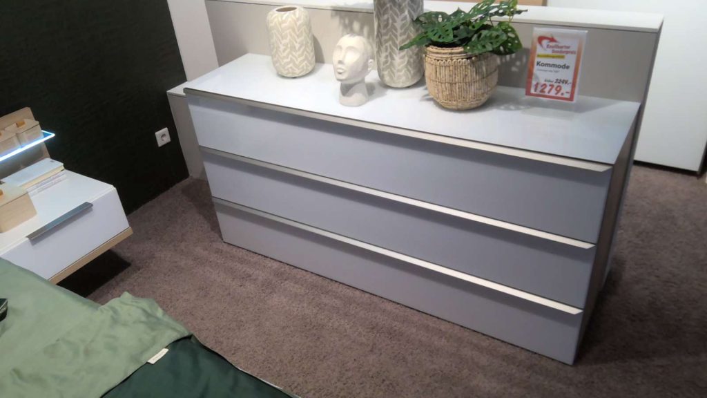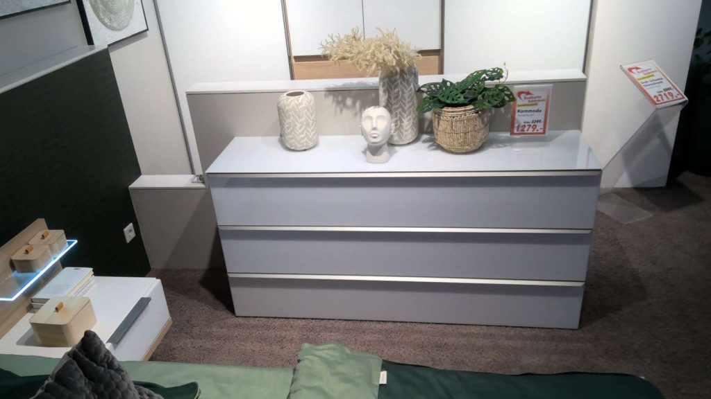 BemerkungDie Kommode "Concept me 700" von NOLTE MÖBEL ist eine eindrucksvolle Ergänzung für jedes moderne Zuhause. Die elegante Ausführung in Weißglas verleiht der Kommode eine zeitlose Ästhetik, die sich mühelos in verschiedene Raumstile einfügt. Die Griffe in gebürsteter Edelstahloptik setzen einen dezenten, aber stilvollen Akzent, der das minimalistische Design unterstreicht. Mit Maßen von etwa 160 cm in der Breite, 70 cm in der Höhe und 42 cm in der Tiefe bietet dieses Möbelstück großzügigen Stauraum, ohne dabei den Raum zu dominieren. Als Ausstellungsware präsentiert er sich in bestem Zustand und trägt zur harmonischen Gestaltung Ihres Wohnraums bei. Sei es im Wohnzimmer, Büro oder Flur, der Concept me 700 ist ein vielseitiger Begleiter, der sowohl in Funktionalität als auch in Design überzeugt.