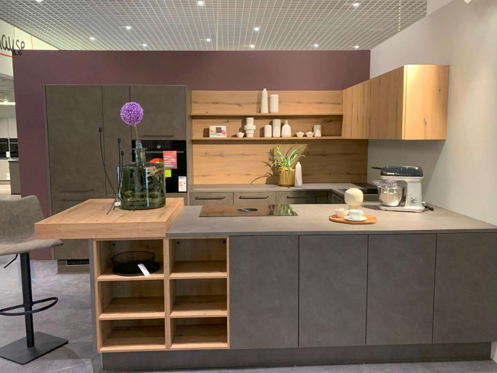 Bemerkung Die IL3170/IL 3150 L23 von NOLTE KÜCHE ist eine beeindruckende Ausstellungsküche, die durch ihr elegantes Design und ihre funktionale Gestaltung besticht. Die U-Küche mit einem beeindruckenden Stellmaß von ca. 3800 x 2745 x 3000 mm bietet reichlich Platz für kreative Kochabenteuer. Die Fronten in 244 Melaminharz, Zement verleihen der Küche einen modernen und gleichzeitig zeitlosen Look, während der Korpus in QGD Quarzgrau eine harmonische Ergänzung bietet. Die schwarzen Metallgriffe sorgen für stilvolle Akzente und unterstreichen das zeitgenössische Design. Diese Küche ist nicht nur ästhetisch ansprechend, sondern auch praktisch durch ihre durchdachte Anordnung der Elemente. Ideal für große Räume, wird die U-Küche schnell zum Mittelpunkt des Hauses, wo Kochen, Lachen und der Austausch mit Familie und Freunden im Vordergrund stehen. Erleben Sie mit NOLTE KÜCHE die Verbindung von Stil und Funktionalität.