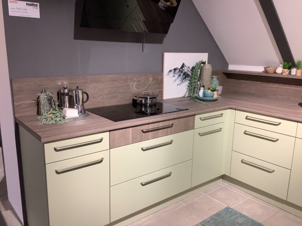 Diese elegante Nolte Abverkaufsküche in hochwertiger Soft‑Lack‑Ausführung überzeugt durch ihr modernes Design, ihre klare Linienführung und die langlebige Qualität, für die Nolte Küchen bekannt sind. Die großzügige U‑Form bietet viel Arbeitsfläche, optimalen Stauraum und eine ergonomische Küchenplanung – perfekt für alle, die Funktionalität und Stil miteinander verbinden möchten.