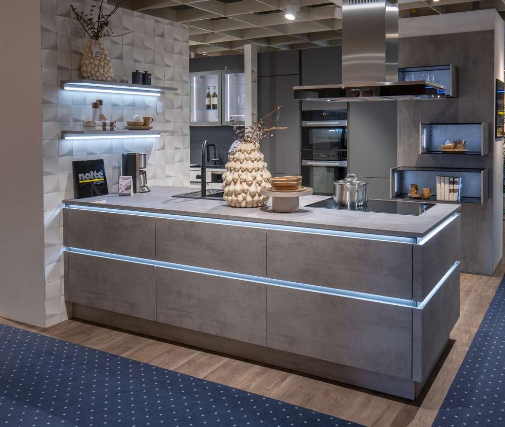 BemerkungDie "Stone" von NOLTE KÜCHE ist eine exquisite Ausstellungsküche, die durch ihr modernes und gleichzeitig zeitloses Design besticht. Diese Musterküche vereint Funktionalität und Ästhetik auf einzigartige Weise und eignet sich perfekt für alle, die Wert auf Qualität und Stil legen. Als Ausstellungsstück bietet die "Stone" die Möglichkeit, ein hochwertiges Küchenmodell zu einem attraktiven Preis zu erwerben, ohne auf die Vorzüge moderner Kücheninnovationen verzichten zu müssen. Hergestellt von NOLTE KÜCHE, einem renommierten Hersteller, dessen Name für Langlebigkeit und exzellentes Design steht, überzeugt diese Küche durch klare Linien, hochwertige Materialien und eine durchdachte Anordnung, die den täglichen Kochabenteuern neuen Glanz verleiht. Wenn Sie auf der Suche nach einer Küche sind, die sowohl funktional als auch ästhetisch anspruchsvoll ist, werden Sie mit der "Stone" garantiert fündig.