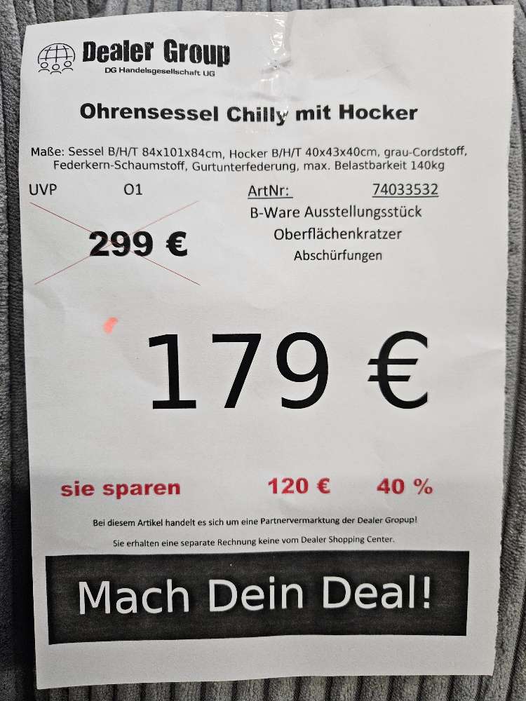 Ohrensessel Chilly mit Hocker Cordstoff Grau statt 299€