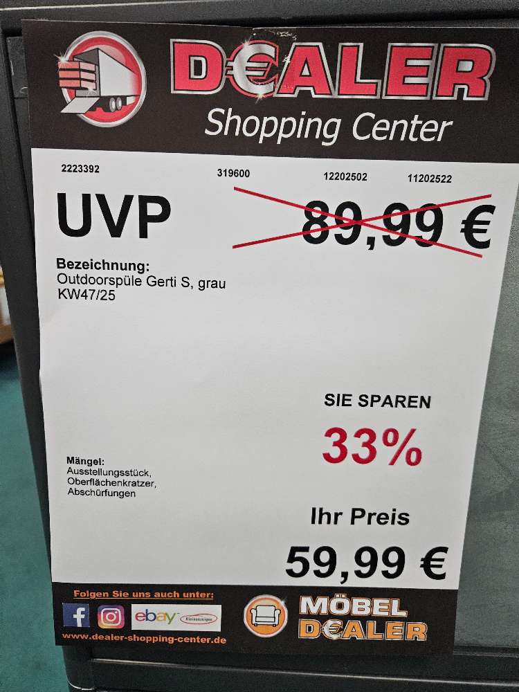 Outdoor Spüle Gerti Grau statt 89,99€