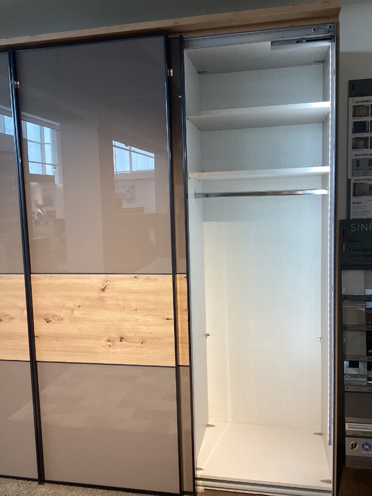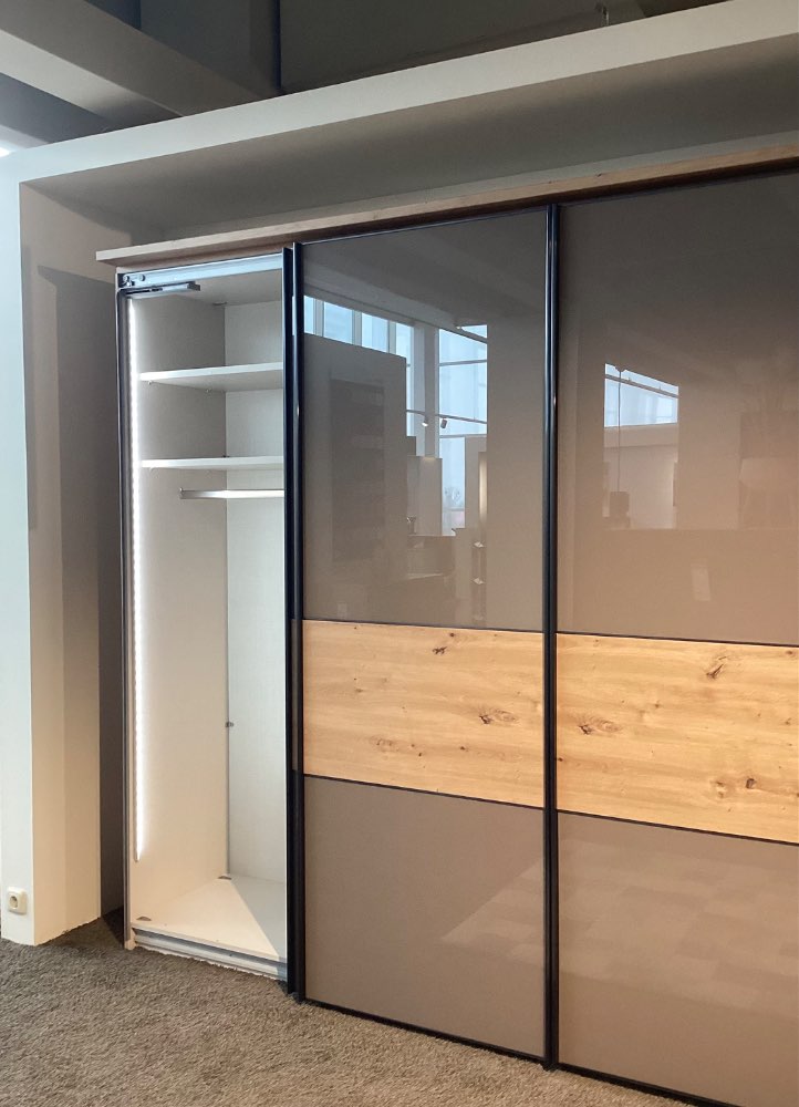 Schwebetürenschrank Dekor Artisan Eiche/ Front Moccaglas B/H/T ca. 298/222/68 cm