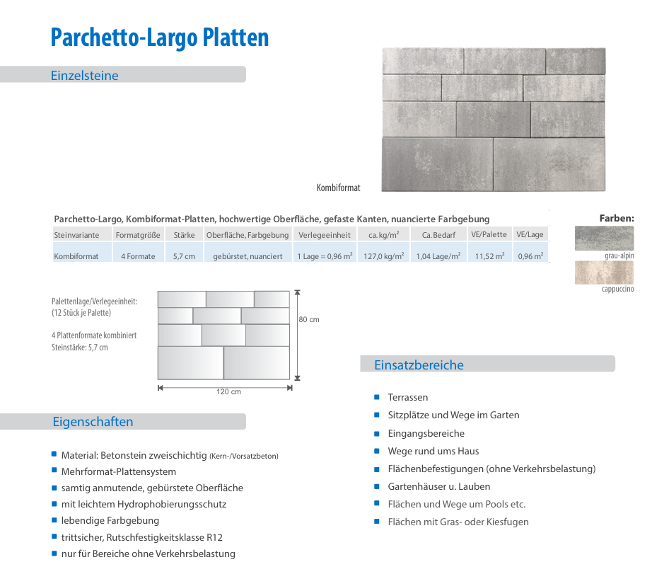 Ausführungpro Palette 11,52 m² / pro Lage 0,96 m²