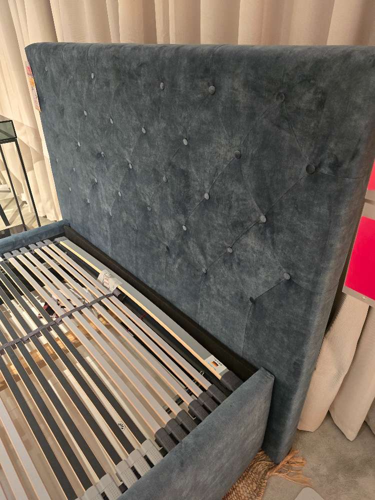 BemerkungDas Polsterbettmodell HE Louisiana beeindruckt mit seiner edlen Optik in einem stilvollen Petrolton. Der hochwertige Samtbezug verleiht dem Bett eine luxuriöse Ausstrahlung und fühlt sich angenehm weich an. Ideal für alle, die ihrem Schlafzimmer einen Hauch von Eleganz und Gemütlichkeit verleihen möchten. Die robuste Konstruktion verspricht Langlebigkeit, während die Kunststoffgleiter an den Füßen den Boden schonen und gleichzeitig für einen stabilen Stand sorgen. Als Ausstellungsware bietet das Bett eine hervorragende Gelegenheit, ein Premiumprodukt zu einem attraktiven Preis zu erwerben. Das Polsterbett integriert sich nahtlos in verschiedene Einrichtungsstile und setzt dabei einen besonderen Akzent durch den eleganten Samtbezug in Petrol. Ein Ort, der zum Entspannen und Träumen einlädt und gleichermaßen als stilvolles Highlight im Raum fungiert.
