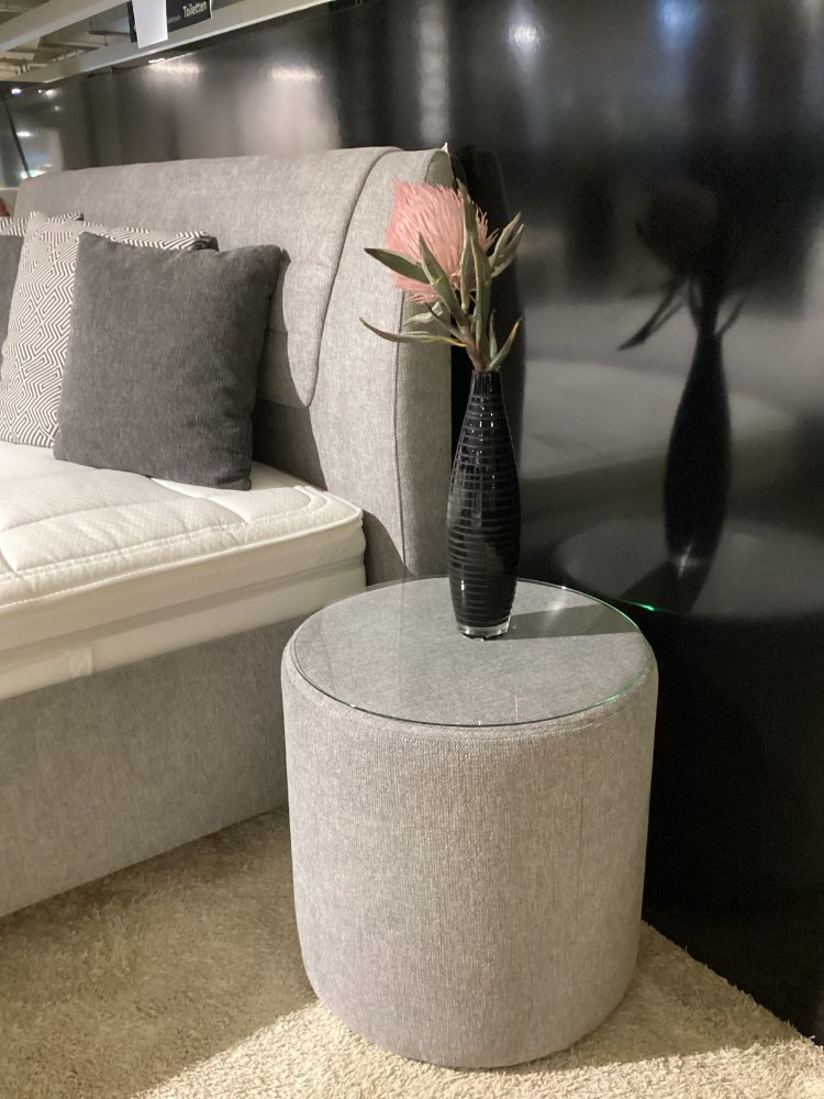 2 x Kissen 45 x 45 cm 2 x Kissen 55 x 55 cm 1 x Plaid ca. 226. x 130 cm 2 x Nachtkonsolen mit Glasauflage 48 x 48x 48 cm