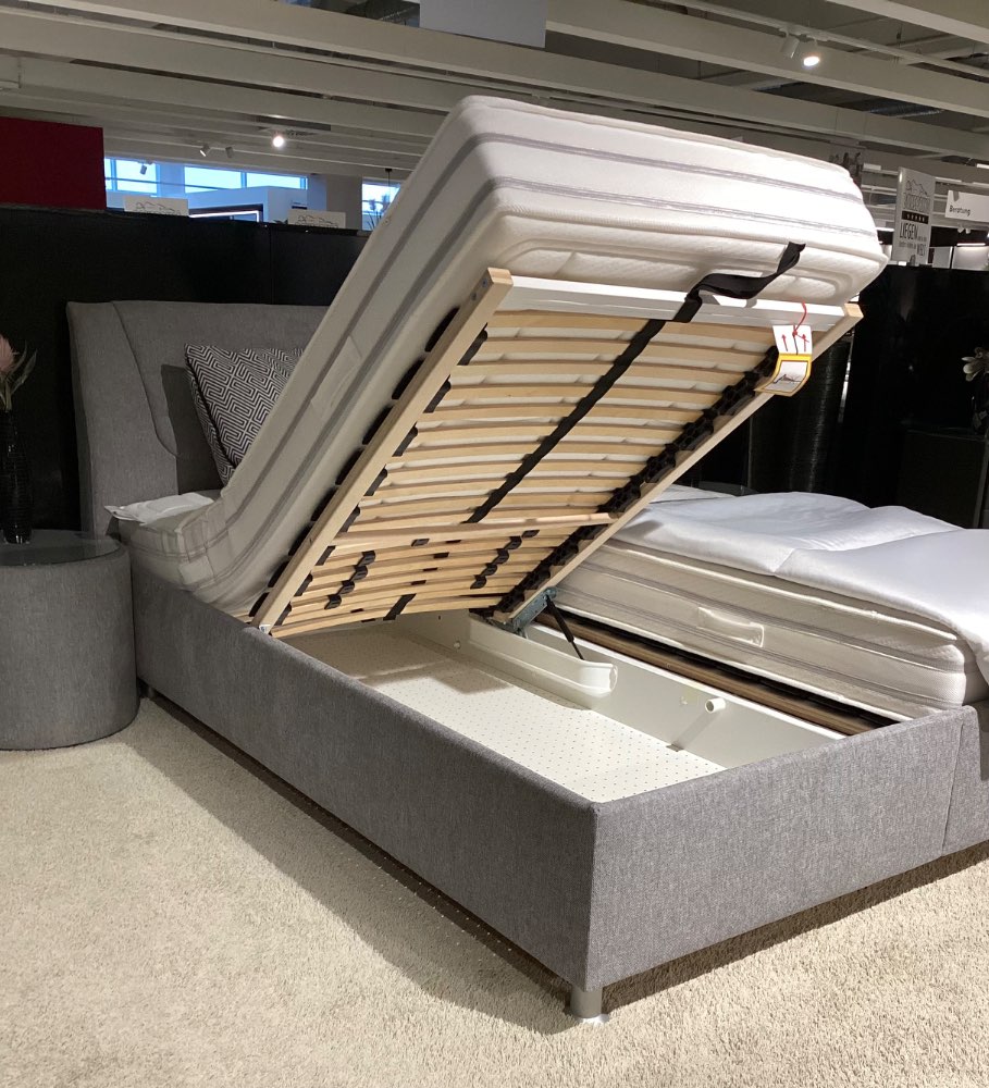 Polsterbett Liegefläche ca. 180 x 200 cm Bettkasten incl. gelochter Bodenplatte Lattenroste mit Gasdruckfeder Taschenfederkernmatratze HG 2 / HG 3 silberfarbene Füße
