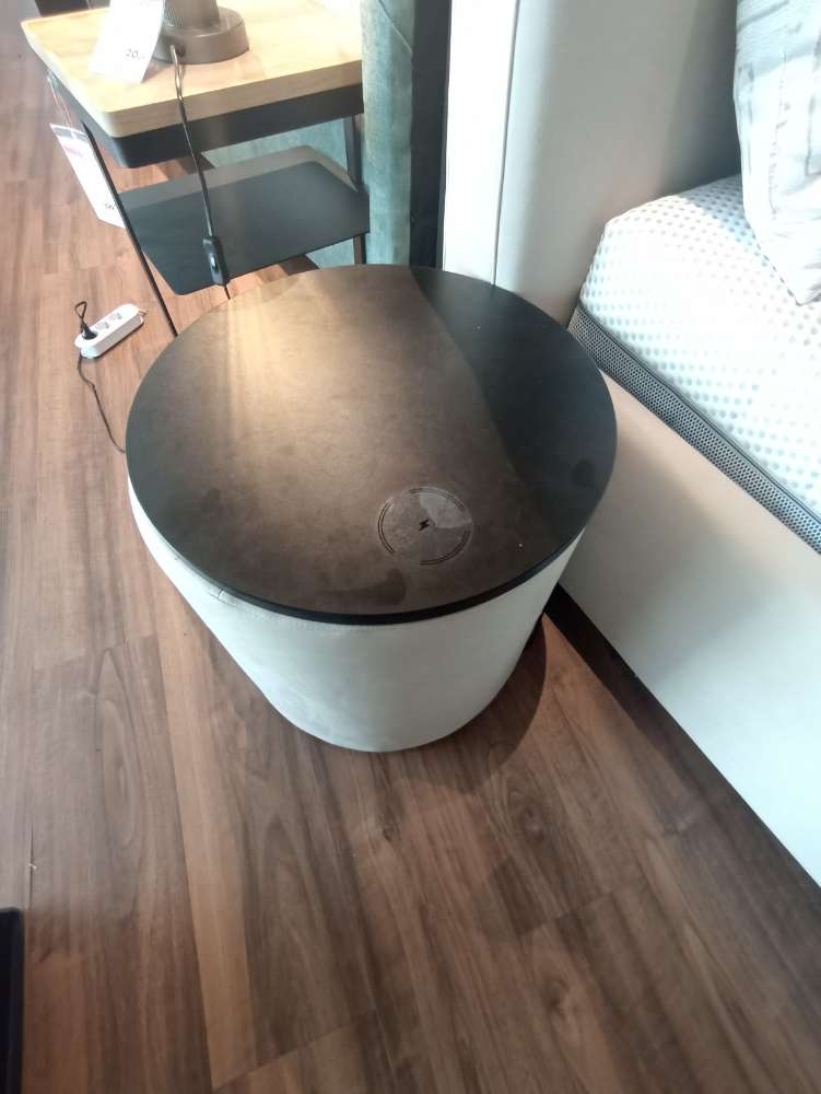Polsterbett Chioggia bestehend aus: 1x Polsterbett ( B/H/T: ca. 197x109x231 cm, Liegefläche ca. 180x200 cm, Kopfteilrücken unecht bezogen) 2x Lattenrahmen mit Funktion 2x Matratzen (links H2, rechts H3, mit Matratzenbezügen Thermo-Cover Stretch) 1x Plaid (ca. 180 x 200 cm, Stoffbezug natur) 2x Kissen (ca. 70x45 cm, Stoffbezug natur) 2x Kissen (ca. 45x45 cm, Stoffbezug natur) 2x Kissen (ca. 55x55 cm, mit Rautensteppung, Stoffbezug natur) 1x Konsole Tonne mit schwarzer Ablageplatte (B/H/T: ca. 48/50/48 cm, intergriertes Induktionsladefeld, Korpus Stoffbezug natur) 1x Unterbaufunktion Bodenplatte (Stauraum) gelocht, 2-geteilt