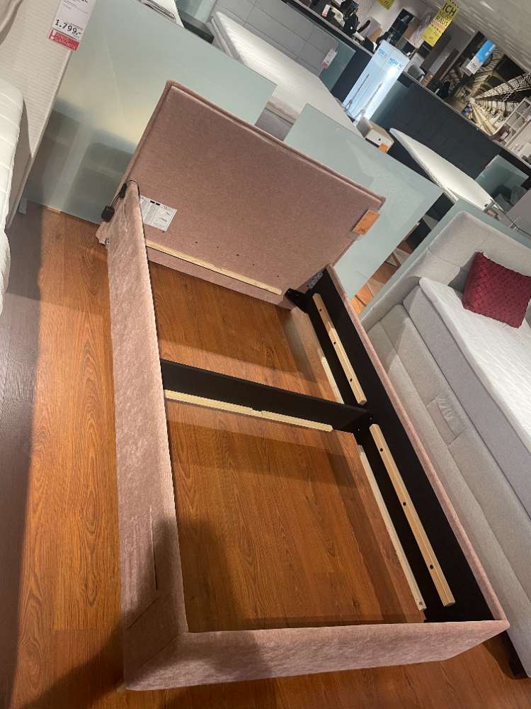 Polsterbett in Rosa Füße in Eichenfarben Maße: 120x200cm
