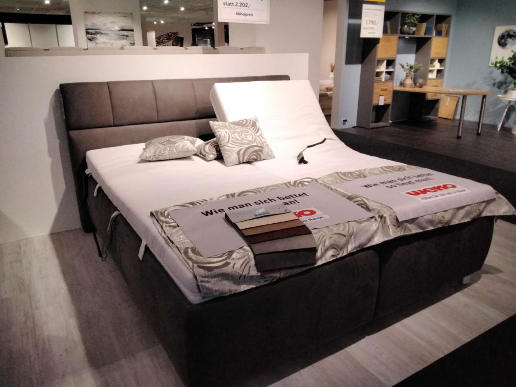 AusführungPolsterbett, Liegefläche ca. 180x200 cm geteilt, 2x Matratze Kimberly H3/H4, 2x Lattenrost 1611 mit motorischer Verstellung inkl. Decke ca. 140x200 cm und Kissenset, 2x 40x40cm/1 x30x30 cm
