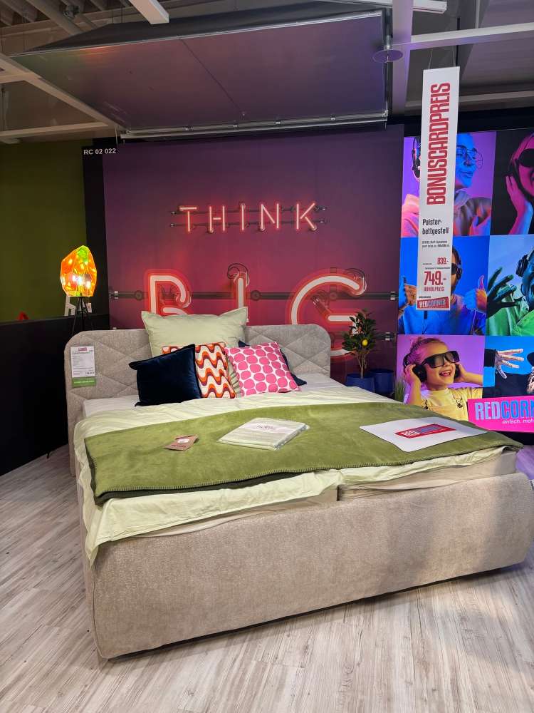 BemerkungDieses Polsterbett, in der Kategorie der Polsterbetten als Austellungsware präsentiert, bietet eine stilvolle Ergänzung für jedes Schlafzimmer. Mit seinen großzügigen Maßen von 180x200cm bietet es ausreichend Platz und Komfort für erholsame Nächte. Der Bezug aus hochwertigem Stoff verleiht dem Bett eine einladende, weiche Oberfläche, die durch das elegant gesteppte Kopfteil mit Rautenmustern zusätzlich aufgewertet wird. Diese subtile, aber wirkungsvolle Steppung verleiht dem Bett eine moderne und zugleich zeitlose Ästhetik, die sich perfekt in verschiedene Einrichtungsstile einfügt. Dieses Bett vereint Funktionalität und dezente Eleganz. Es könnte die ideale Wahl für all jene sein, die eine Kombination aus Komfort und Stil suchen, um ihrem Schlafzimmer einen Hauch von Raffinesse zu verleihen.