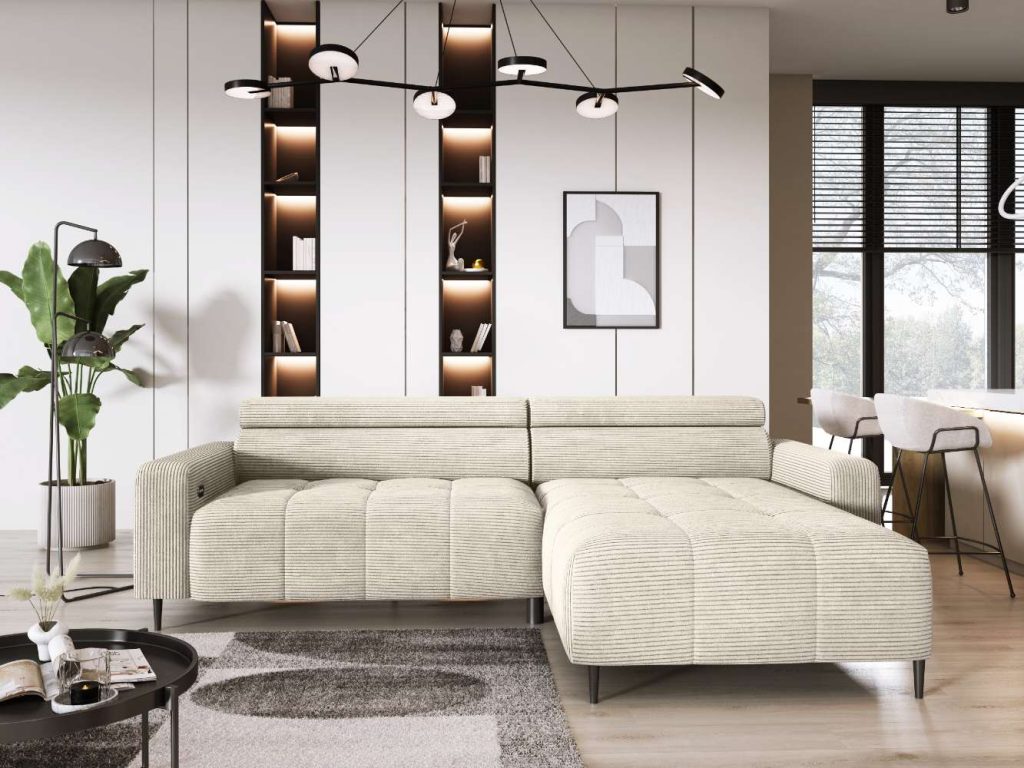 im Stoff Cord beige, Füße Metall schwarz,