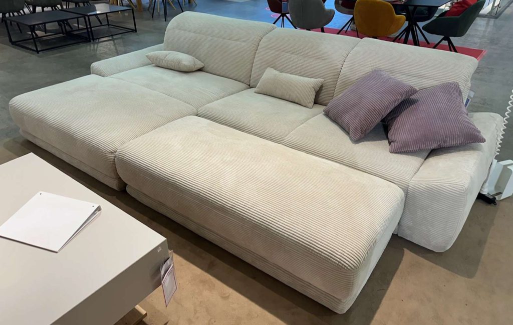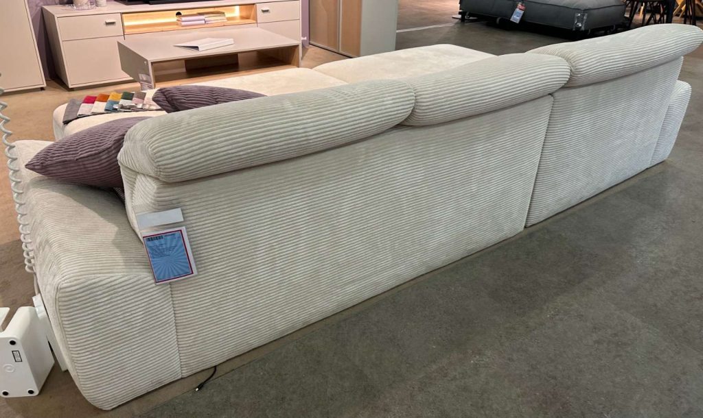 BemerkungDie Polstergarnitur 7544 von ADA Möbelfabrik in der eleganten Farbe "Cord Cream" bietet eine harmonische Verbindung von Stil und Funktionalität, die jeden Wohnraum bereichert. Diese Ausstellungsware vereint luxuriösen Komfort mit praktischen Extras, um ein unvergleichliches Sitzvergnügen zu garantieren. Die Kombination aus einer Chaiselongue mit Armteil links und einem 2-Sitzer mit Armteil rechts bildet eine vielseitige Sitzlandschaft, die zum Verweilen einlädt. Mit ihren verstellbaren Kopfstützen und der motorisch betriebenen Vorziehbank passt sich diese Garnitur mühelos Ihren Bedürfnissen an und sorgt für maximalen Komfort.