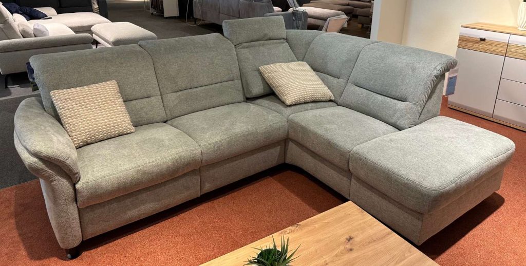 BemerkungDie ZEHDENICK Polstergarnitur MM-ZE1148 in der ausdrucksstarken Farbe Cyber Zinc vereint anspruchsvolles Design mit durchdachter Funktionalität. Mit einer großzügigen Größe von ca. 259x209 cm bietet sie ausreichend Platz für entspannte Stunden. Der Federkern-Sitz garantiert dabei höchsten Komfort und wird durch elegante, schwarze Metallfüße in einer Höhe von ca. 8 cm stilvoll ergänzt. Der Sitzkomfort wird durch ein innovatives Funktionsspektrum erhöht: Zwei Kopfteilverstellungen links sowie drei rechts bieten Flexibilität für individuelle Bedürfnisse. Die Wallaway-Funktion auf der linken Seite ermöglicht es, die Sitz- oder Liegeposition ohne Nachteil für den Raumkomfort zu verändern. Ebenfalls praktisch ist der anstellbare Hocker, der nicht nur als Sitzgelegenheit dient, sondern auch durch seinen aufklappbaren Stauraum und Relaxrücken überzeugt. Eine unaufdringliche Ästhetik wird durch die dezente Doppelsteppnaht ohne Kontrastfaden unterstrichen. Komplettiert wird das Ensemble durch gemütliche Kissen, die zum Verweilen einladen. Als Ausstellungsware von ZEHDENICK verkörpert diese Polstergarnitur stilvolle Eleganz und funktionale Raffinesse.