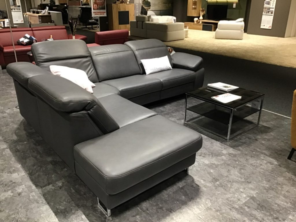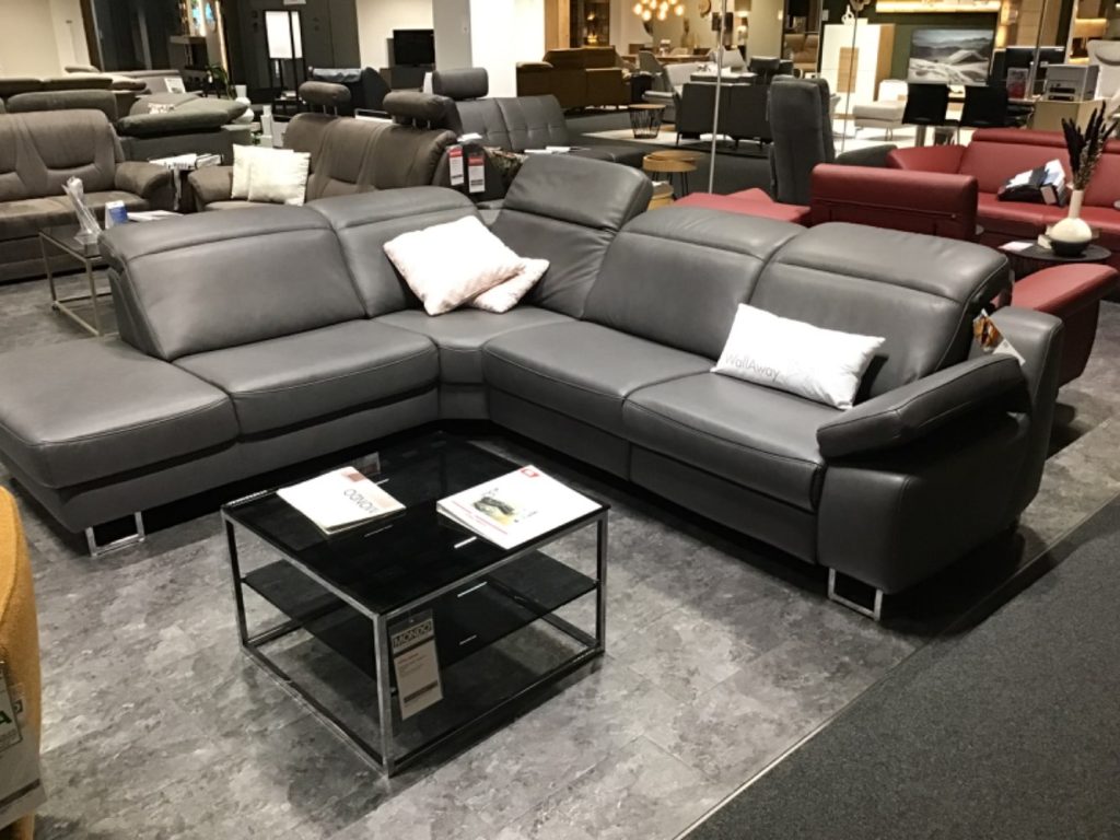 Bemerkung Entdecken Sie das luxuriöse Ecksofa von HUKLA, ein wahres Meisterwerk der Handwerkskunst, das sowohl Stil als auch Komfort vereint. Gefertigt aus hochwertigem Echtleder, verleiht dieses Sofa Ihrem Wohnzimmer eine zeitlose Eleganz. Mit großzügigen Maßen von 261x296 cm bietet es ausreichend Platz zum Entspannen und Wohlfühlen. Die motorische Relaxfunktion im Sitz garantiert Ihnen ein unvergleichliches Entspannungserlebnis auf Knopfdruck, während die verstellbaren Armlehnen individuellen Komfort ermöglichen. Elegant glänzende Chromfüße unterstreichen den modernen Charakter des Sofas und sorgen für Stabilität und eine schwebende Optik. Perfekt als Ausstellungsstück, zieht dieses Ecksofa alle Blicke auf sich und lässt sich harmonisch in verschiedenste Einrichtungsstile integrieren. Redefinieren Sie Ihr Wohnerlebnis mit diesem herausragenden Möbelstück von HUKLA.