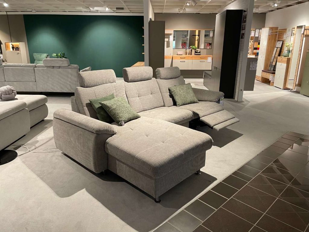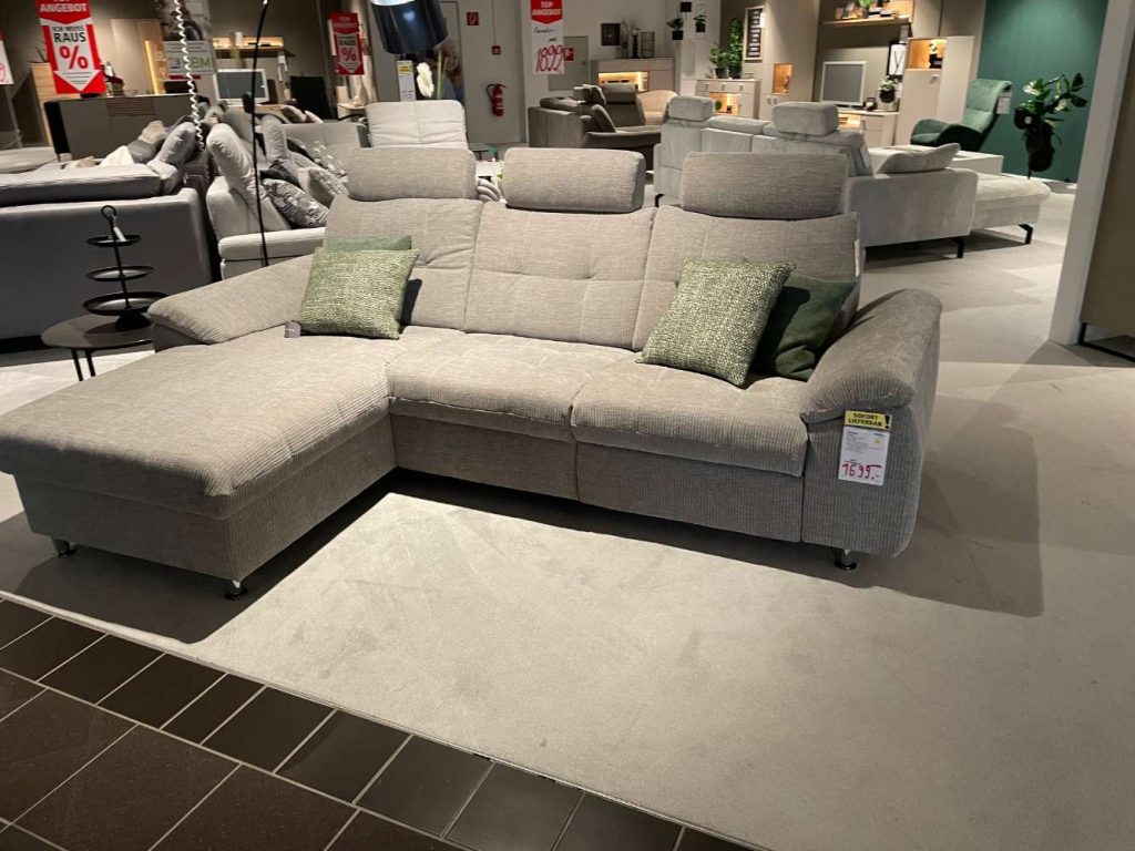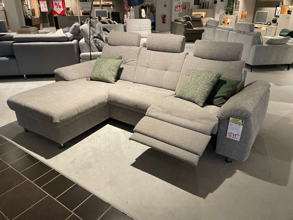Bemerkung Erleben Sie ultimativen Komfort und zeitgenössischen Stil mit unserer luxuriösen Polstergarnitur in stilvollem Maranta Platin. Diese exquisite Garnitur, gefertigt aus hochwertiger Microfaser, bietet nicht nur eine einladende Oberfläche, sondern auch bemerkenswerte Langlebigkeit und einfache Pflege. Als Ausstellungsstück besticht sie zusätzlich durch ihre raffinierte Verarbeitung und ein modernes Design, das durch die eleganten Chrom-Metallfüße perfekt ergänzt wird. Besonders hervorzuheben sind die inkludierten Funktionen, die ein Höchstmaß an Entspannung garantieren. Die motorische Relaxfunktion ermöglicht es Ihnen, sich auf Knopfdruck in eine gemütliche Liegeposition zu begeben, während die verstellbaren Kopfstützen eine ergonomische Unterstützung bieten und zusätzlichen Komfort gewährleisten. Mit einem Stellmaß von etwa 169x256 passt diese Garnitur sowohl in geräumige Wohnzimmer als auch in stilvoll gestaltete Lounges. Gönnen Sie sich das Erlebnis von hervorragendem Sitzkomfort gepaart mit zeitlosem Design.