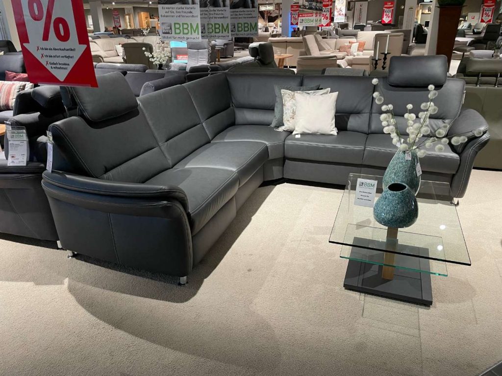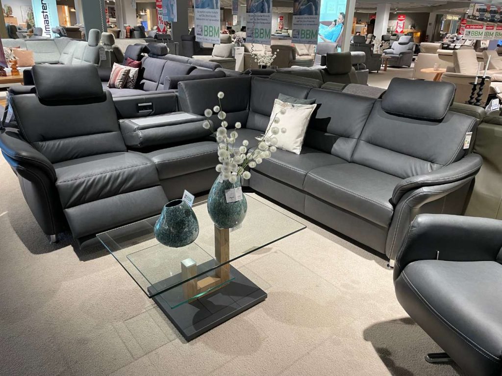 BemerkungTauchen Sie ein in ein luxuriöses Sitzerlebnis mit der Polstergarnitur von POLINOVA. Diese exquisite Garnitur, gefertigt aus hochwertigem Echtleder in klassischem Schwarz, vereint Funktionalität und Eleganz. Präsentiert als Austellungsware besticht sie durch ihre beeindruckende Präsenz und zeitlose Ästhetik. Mit einem großzügigen Stellmaß von etwa 262x262 cm bietet sie ausreichend Platz zum Entspannen und Wohlfühlen. Die motorische Relaxfunktion ermöglicht ein individuelles Anpassen der Sitzposition, während der abklappbare Rückenlehne mit integriertem Ablagetisch ein zusätzliches Element von Komfort und Praktikabilität bereitstellt. Zwei Premium Kopfstützen sorgen für optimalen Halt und Entspannung in jeder Position. Die Alufüße aus Metall verleihen der Garnitur eine moderne Note und versprechen Stabilität und Langlebigkeit. Diese Polstergarnitur ist mehr als nur ein Möbelstück; sie ist ein Statement für Stil und Komfort, das in jedem Wohnraum herausragt.
