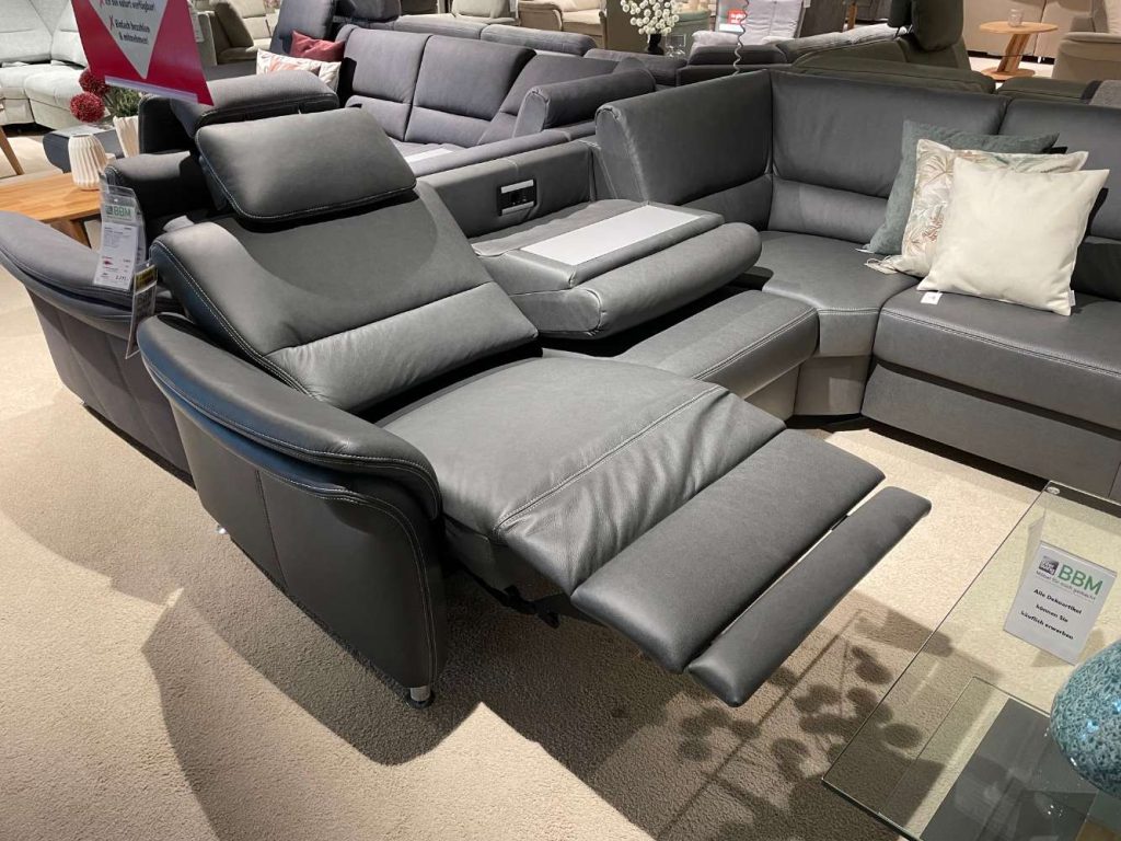 AusführungPolstergarnitur mit motorischer Relaxfunktion, abklappbarer Rückenlehne mit Ablagetisch, 2x Premium Kopfstütze