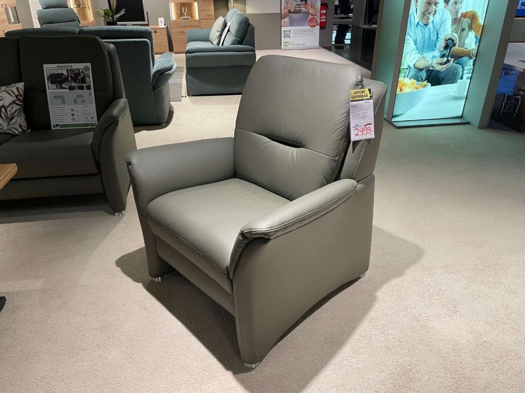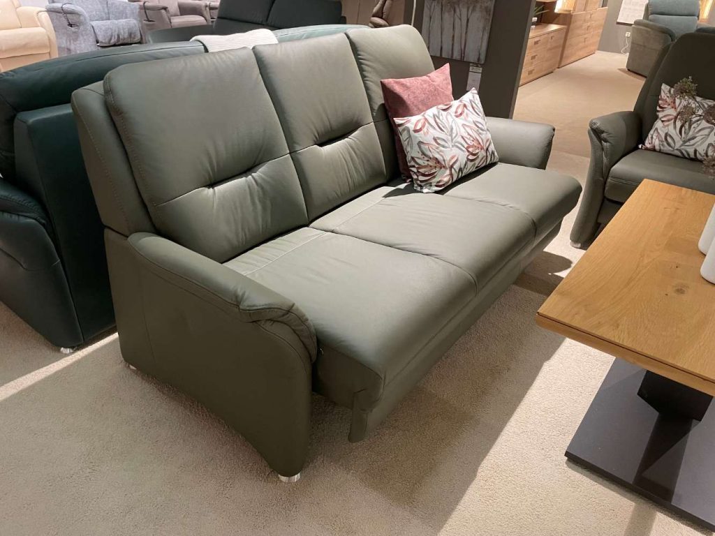 BemerkungTauchen Sie ein in den luxuriösen Komfort der 3-2-1 Sofagruppe von POLINOVA, die ein echtes Highlight in jedem Wohnzimmer darstellt. Die kombinierte Verwendung von einladendem Echtleder in der trendigen Farbe Grün Olive und stilvollen Metallfüßen in Alu verleiht diesem Ensemble eine moderne und zugleich zeitlose Ausstrahlung. Der dreisitzige Sofa präsentiert sich mit einer innovativen motorischen Vorziehbank und einer Liegearmlehne, die höchsten Komfort und Flexibilität bieten. Der zweisitzige Sofa erweitert die Funktionalität durch einen praktischen Bettkasten, ideal für zusätzlichen Stauraum und spontane Übernachtungsgäste. Alle Modelle sind zudem im Rückenbereich vollständig mit Echtleder bezogen, was ihnen eine rundum ansprechende Optik verleiht. Dank der großzügigen Maße von 194x101x89 cm beim Dreisitzer und 142x101x89 cm beim Zweisitzer, ergänzt durch einen bequemen Sessel von 92x101x89 cm, bietet diese Sofagruppe ausreichend Platz für Familie und Freunde. Erleben Sie die perfekte Mischung aus Design, Komfort und Funktionalität mit dieser exquisiten Ausstellungskollektion von POLINOVA, die Ihr Zuhause zu einem Ort des Wohlfühlens macht.