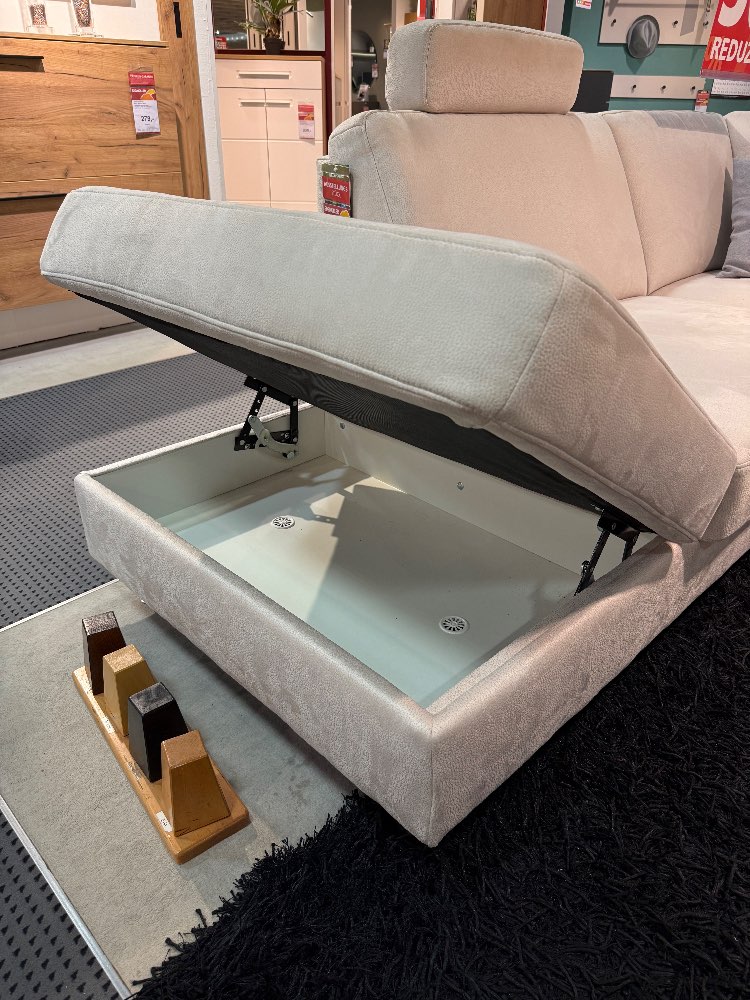 inkl. Kopfstützen, Querschläfer und anstellhocker aufklappbar, SH: 45 cm, Stellmaß: ca. 235 x 309 x 167 cm