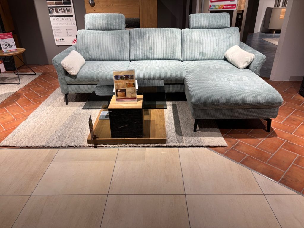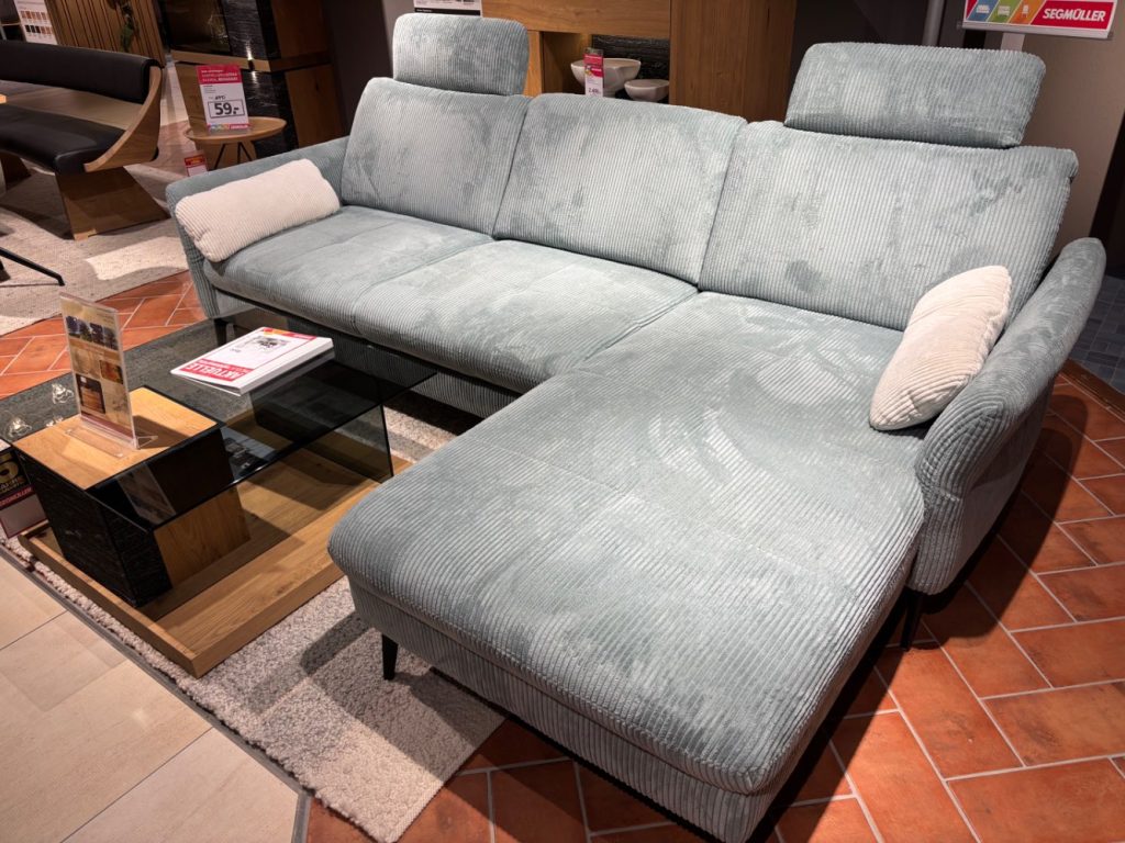 BemerkungPolstergarnitur "Reno" von Zehdenick in Stoff Cord Aqua