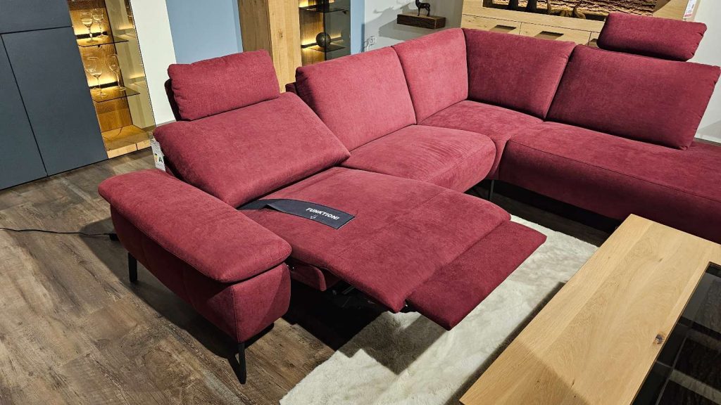 Besondere Merkmale sind die motorische Relaxfunktion und die klappbare Armlehne, die ein individuell anpassbares Sitzerlebnis bieten. Die Multifunktionskopfstütze und zusätzliche Kopfstütze sorgen für zusätzlichen Komfort, während die schwarz-matte Metallfüße der Polstergarnitur einen modernen Touch verleihen. Diese vielseitigen Funktionen machen Ella zu einer wertvollen Bereicherung für jeden Wohnraum.