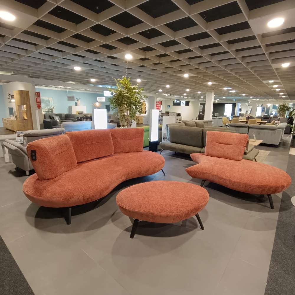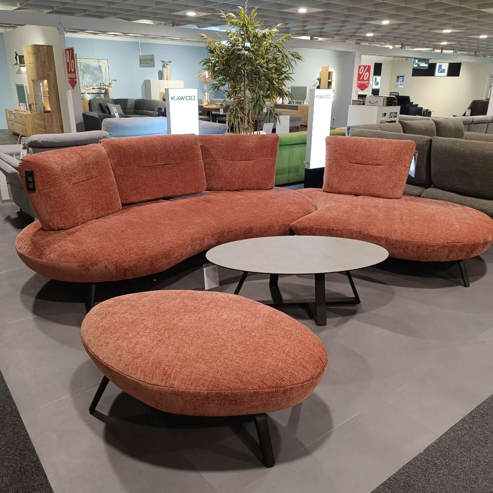 AusführungBezug: Stoff 11 Nile Fb. marsala 200 PG 2, TKZ:? Rücken: PUR-Schaum auf Gummigurtung Rückenoptik: glatt mit Einzug Sitz: PUR-Schaum auf Wellenfedern (Standard) Sitzpolsterung: leger Sitzhöhe: ca. 43 cm Typ A (Standard) Normalhöhe Sitztiefe: ca. 93 cm Rücken echt Fuß: Metall schwarz matt bestehend aus: Anstellelement rechts 1087 B/H/T ca. 190x93x138 cm, Nierensofa 3080 B/H/T ca. 266x93x138 cm